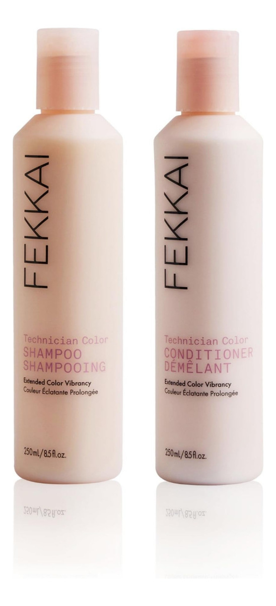 Shampoo FEKKAI Technician Color (8,5 onças) + condicionador (8,5 onças) — Prolonga a vibração dos cabelos tingidos — Livre de sulfatos, parabenos e ftalatos — Vegano, sem crueldade — Pacote de xampu e condicionador — Este pacote inclui um (1) shampoo Technician Color (8,5 onças) e um (1) condicionador de cor Technician Color (8,5 onças). – Fórmulas para cabelos tingidos – Transforme desbotado em fresco! Otimizados para aumentar a vibração de todos os tons de cores, nosso xampu e condicionador hidratam, protegem e protegem a cor, ampliando a vibração de cada loira, morena, ruiva e muito mais. – PRINCIPAIS BENEFÍCIOS – Formulado para gerar menos atrito entre os fios de cabelo, ajudando a reduzir ainda mais o desbotamento da cor e preservá-la por mais tempo. Extratos derivados de plantas e polímeros de proteção solar protegem do desbotamento da cor, do bronzeamento e dos raios UV. – INGREDIENTES – O óleo de semente de ameixa Mirabelle ajuda a proteger os cabelos dos efeitos ressecantes, prejudiciais e destruidores da cor da exposição solar, dos elementos e dos radicais livres. O extrato de broto de girassol com extrato de fruta de tara fornece propriedades de fotoproteção. – DETALHES – Apresenta um aroma de mistura de pêssego e frutas vermelhas com notas tropicais. Seguro para todos os tipos de cabelo, incluindo cabelos tratados com queratina/cor. Limpo, vegano, livre de crueldade, sustentável e livre de sulfatos, silicones, parabenos, ftalatos e glúten.