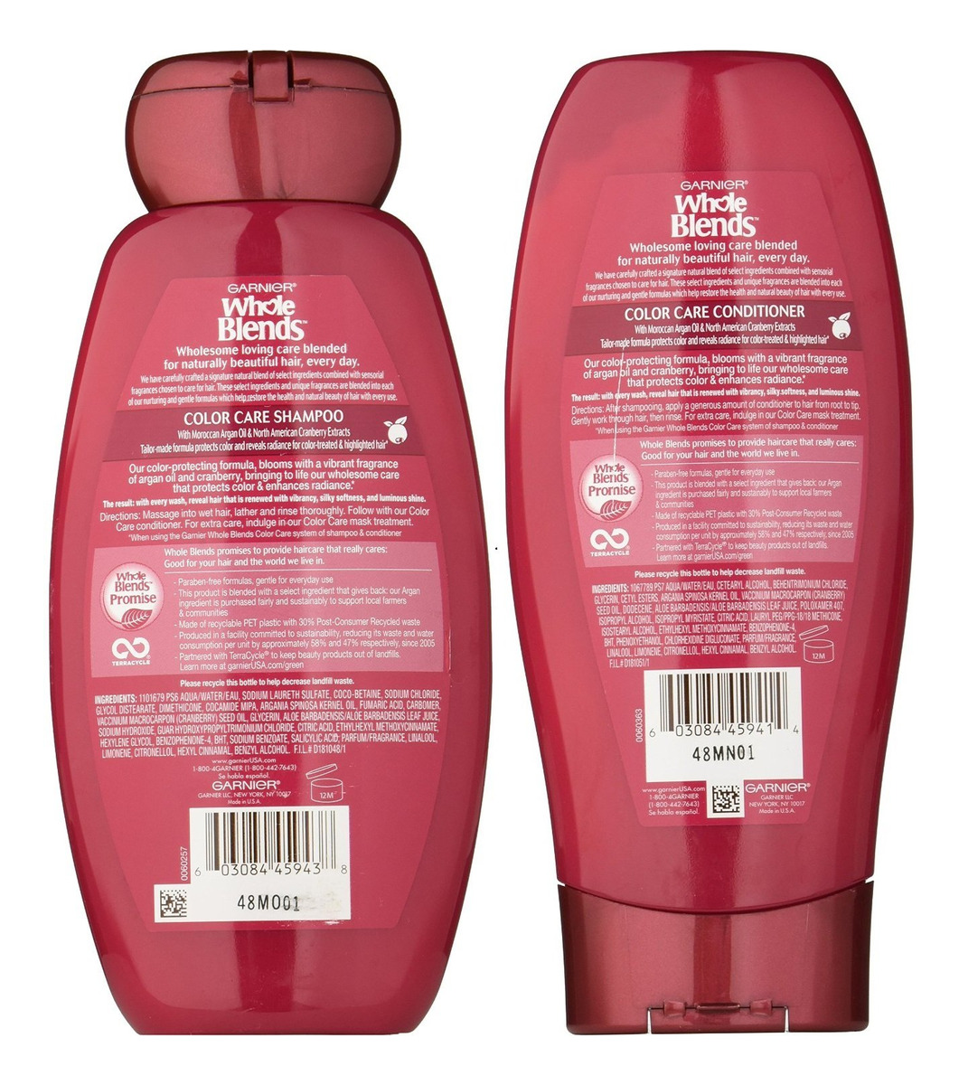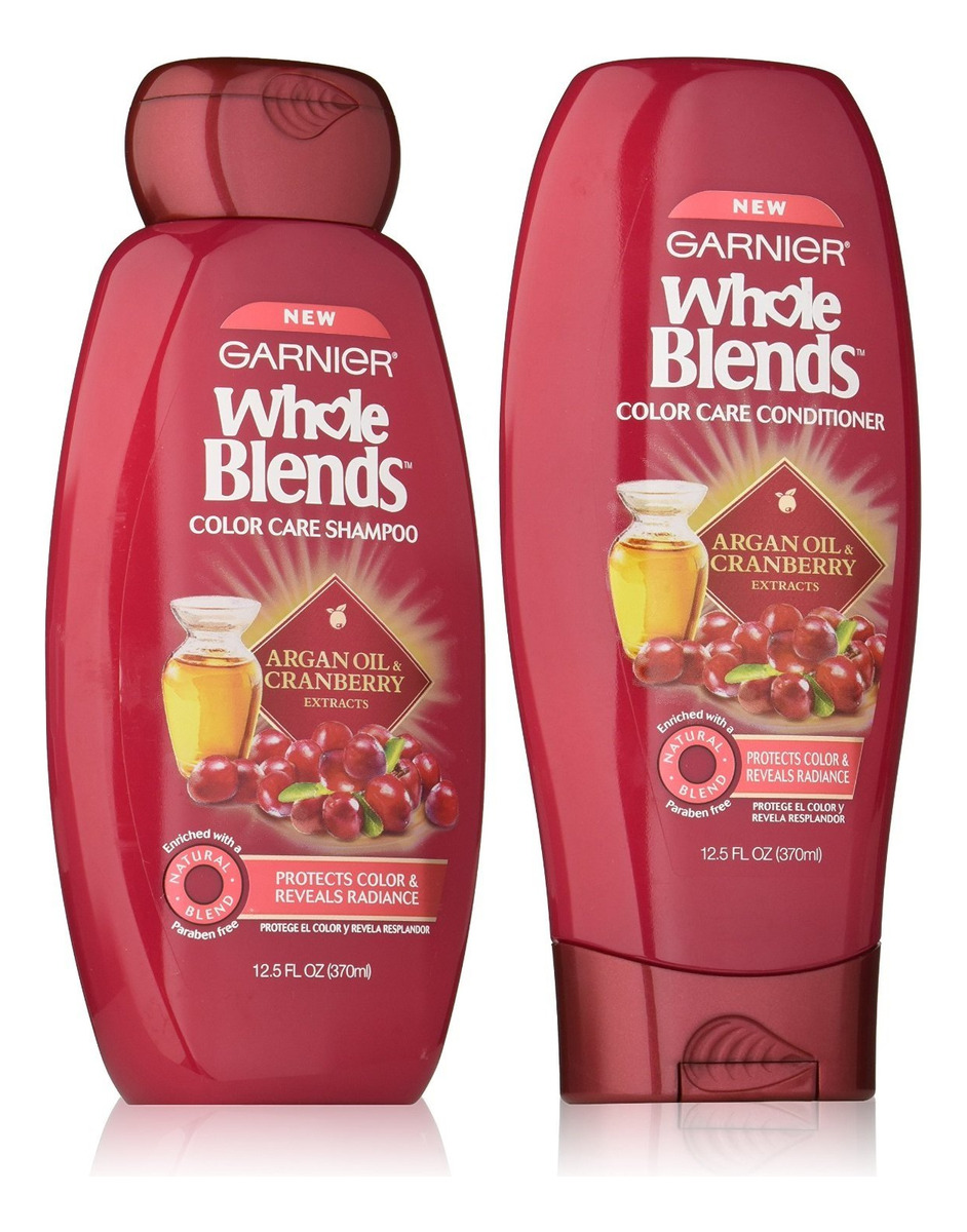 Conjunto de shampoo e condicionador Garnier Whole Blends Color Care com óleo de argan e extratos de cranberry, 12,5 onças cada