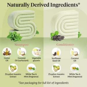 • FÓRMULA DE REDUÇÃO DE FLOCOS COM VALOR DE LONGA DURAÇÃO: Formulada com Extrato de Joazeiro Brasileiro, nossa barra condicionadora totalmente natural ajuda a reduzir a formação de flocos nos fios, promovendo um couro cabeludo mais saudável e cabelos mais macios, ao mesmo tempo que nutre profundamente os fios rejuvenescidos. Altamente concentrada e projetada para durar mais do que os condicionadores líquidos tradicionais, esta barra sólida oferece um valor excepcional.