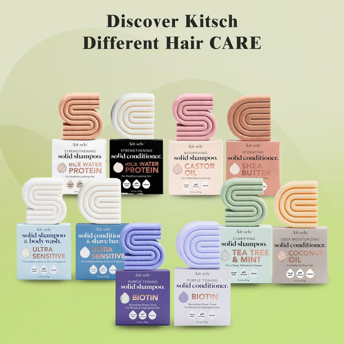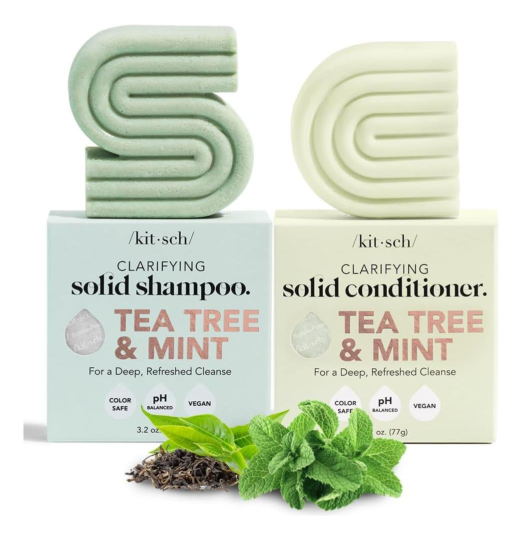 • BARRA DE SHAMPOO TEA TREE 2 em 1: A barra Kitsch Clarifying Solid Shampoo para Cabelo é feita com óleo de tea tree e hortelã, que ajudam a remover quaisquer óleos ou produtos acumulados em seu cabelo. Também ajuda a acalmar a irritação do couro cabeludo e a combater a caspa