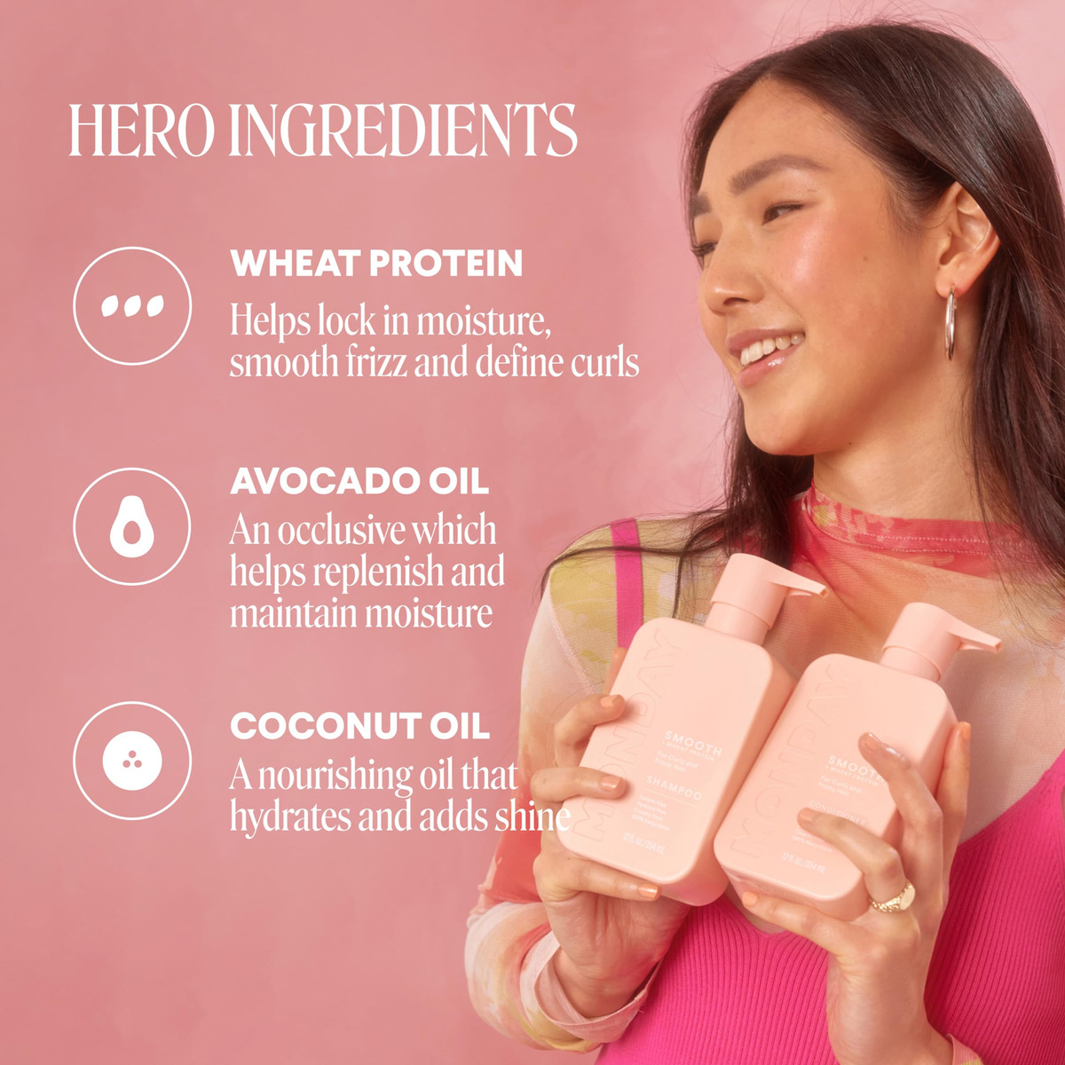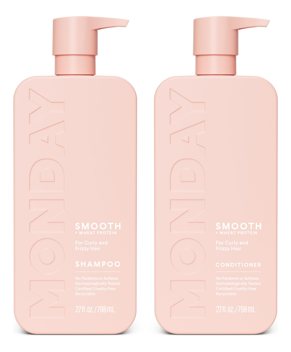 Conjunto de banheiro MONDAY HAIRCARE Smooth Smooth Shampoo + Condicionador (pacote com 2) de 27 onças cada para cabelos crespos, grossos e encaracolados, feito de óleo de coco, manteiga de karité e vitamina E, frascos 100% recicláveis — SMOOTH SHAMPOO + CONDICIONADOR: este conjunto premiado de xampu e condicionador ajuda a dar maciez e forma aos tipos de cabelos cacheados, ondulados e crespos. Ele contém óleo de coco, manteiga de karité e vitamina E para deixar o cabelo macio, brilhante e sem frizz. – QUALIDADE DE SALÃO: Nossas fórmulas modernas são dermatologicamente testadas, têm pH balanceado e livres de SLS, parabenos e ftalatos. Em vez disso, usamos ingredientes naturais como manteiga de karité, óleo de coco, proteína de arroz e vitamina E para nutrir e restaurar. – PREMIADO: Nossa linha de xampus e condicionadores tem 11 grandes prêmios de beleza e ainda mais, incluindo o Prêmio Cosmopolitan de Beleza do Santo Graal de 2021, o Prêmio de Beleza Glamour 2021, o Prêmio de Beleza Cosmopolitan 2021 e o Prêmio InStyle de 2022 Best Beauty Buy. – CERTIFICADO COMO LIVRE DE CRUELDADE: Todos os produtos da Monday são aprovados como aprovados livre de crueldade no programa Leaping Bunny da Cruelty Free International. Também temos orgulho de sermos reconhecidos pela PETA como uma marca que não testa em animais. – GARRAFAS 100% RECICLÁVEIS: nossas pequenas garrafas rosa não só ficam ótimas no seu chuveiro, mas também são feitas de plástico 100% reciclável para ajudar a minimizar a pegada de carbono e reduzir o aterro sanitário. Uma vitória para seu cabelo e para o meio ambiente.