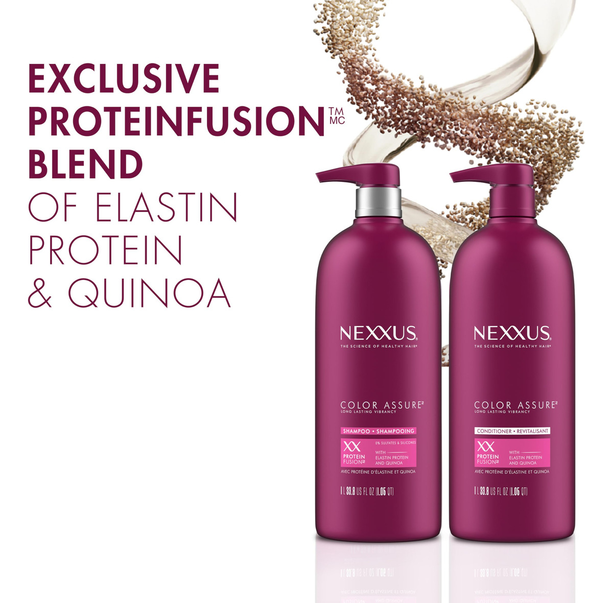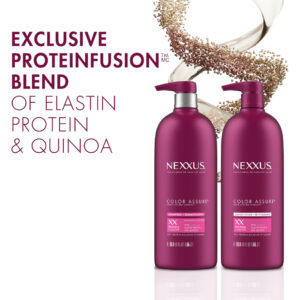 Shampoo e condicionador Nexxus Color Assure Color Assure 2 unidades para cabelos tratados com cores melhoram a vibração da cor em até 40 lavagens – XAMPU E CONDICIONADOR SEGUROS DE COR PARA CABELOS COLORIDOS: o shampoo e condicionador Nexxus Color Assure para cabelos coloridos ajudam a hidratar e melhorar a vibração dos cabelos coloridos – XAMPU E CONDICIONADOR SEGUROS DE COR: este shampoo e condicionador sem cor fornece vibração duradoura para até 40 lavagens – INGREDIENTES DE QUALIDADE PARA CABELOS COLORIDOS TRATADOS: infundidos com uma mistura exclusiva de ProteInfusion com proteína de elastina e quinoa, essa cor shampoo e condicionador protetores ajudam a realçar a cor – XAMPU E CONDICIONADOR FEMININOS PARA CABELOS COLORIDOS TRATADOS: o condicionador de cabelo Nexxus Color Assure cria uma camada defensiva invisível para proteger as proteínas essenciais da fibra capilar – SHAMPOO E CONDICIONADOR PROTETORES DE COR COM QUALIDADE DE SALÃO: os produtos para cabelo Nexxus nasceram em salões e foram aperfeiçoados pela ciência, usando tecnologia de alto desempenho e ingredientes preciosos – Shampoo e condicionador Nexxus Color Assure para cabelos tratados com cores Color Vibrancy: Para obter melhores resultados, use nosso shampoo e condicionador para cabelos coloridos juntos