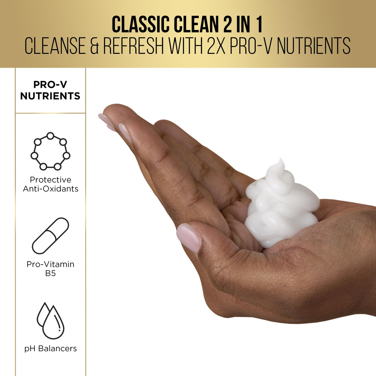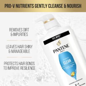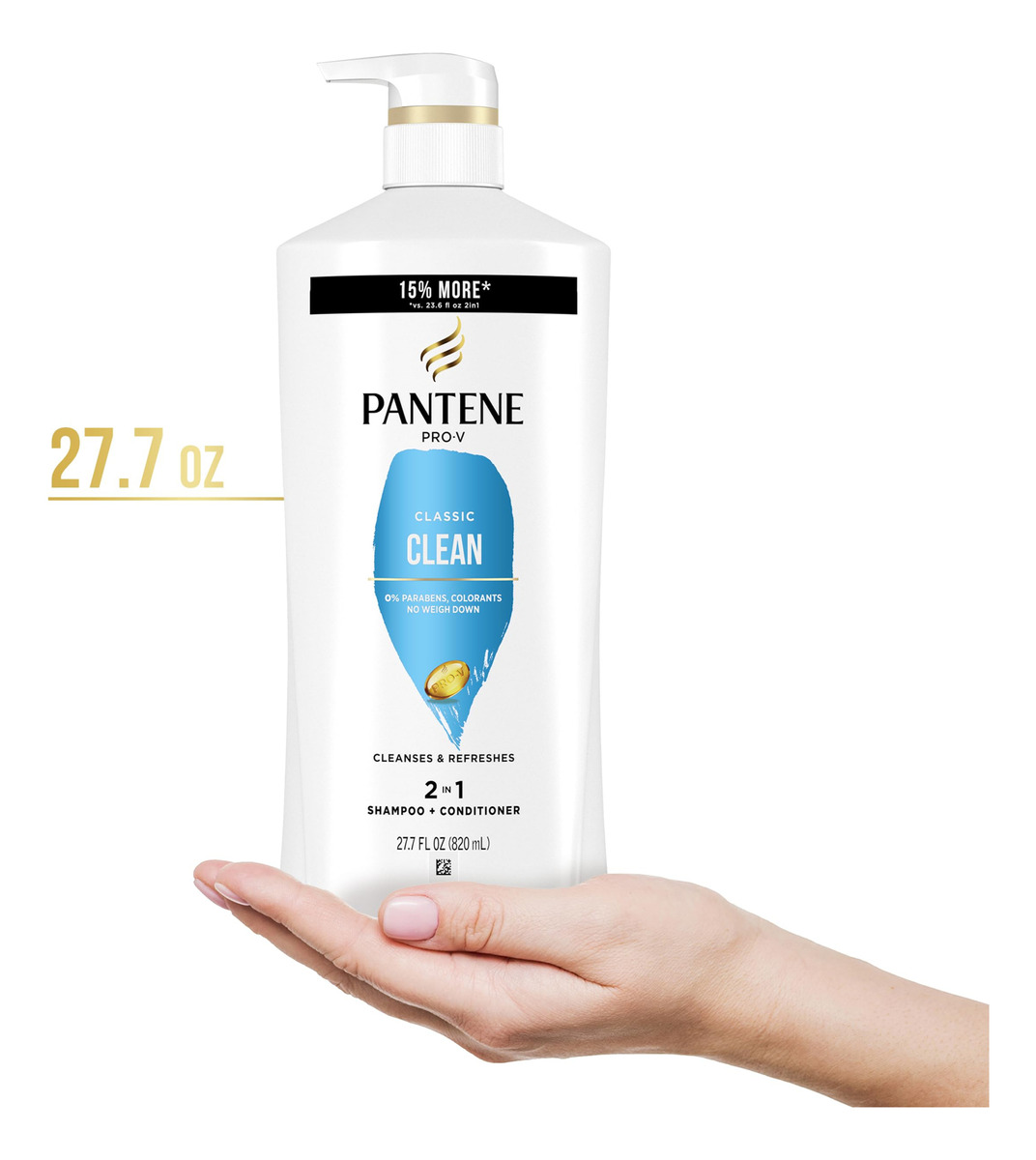 Conjunto de xampu e condicionador Pantene Classic Clean 2 em 1 com tratamento capilar, nutrientes Pro-V para cabelos secos e tingidos, nutrição e hidratação de longa duração, rico em antioxidantes, 27,7 fl oz cada, pacote com 2 unidades — TRABALHO ÁRDUO: abastece o cabelo com uma mistura potente de nutrientes e antioxidantes Pro-V para que o cabelo fique brilhante e gerenciável — DURADOURO: limpa e condiciona suavemente com uma fórmula rica em vitaminas com 2x mais nutrientes, com resultados que duram mais de 72 horas – NUTRIÇÃO A CADA LAVAGEM: nutre os fios para deixar o cabelo brilhante e maleável – NUTRIÇÃO DA RAIZ ÀS PONTAS: Estes As poderosas fórmulas Classic Clean funcionam juntas para fornecer nutrição leve, mantendo a capacidade de gerenciamento para cabelos brilhantes e com aparência saudável — esta é a NOVA versão deste item