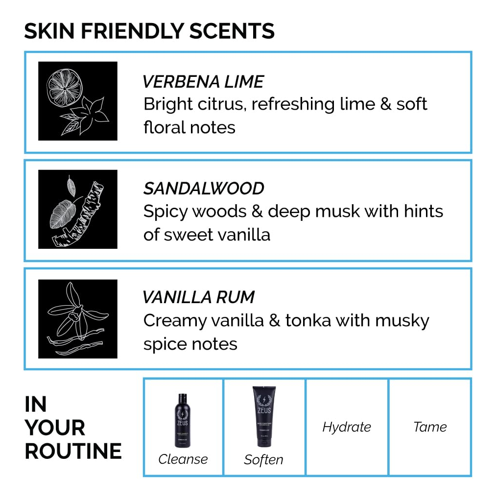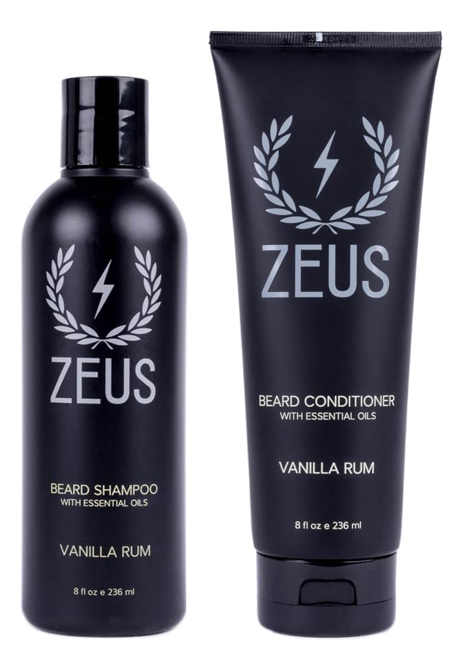 Conjunto masculino de xampu e condicionador de barba ZEUS FEITO NOS EUA. Suaviza, hidrata e hidrata, evita coceira e descamação (aroma: rum de baunilha) – MELHOR LAVAGEM DE BARBA: descubra nosso conjunto premium de lavagem de barba, que inclui o sabonete de limpeza ZEUS Beard e nosso hidratante condicionador de barba ZEUS, ambos vêm em frascos convenientes de 8 onças. – Xampu para barba: nosso xampu para barba formulado de forma natural feito de óleos essenciais suaves e poderosos para uma barba mais saudável, incluindo chá verde, camomila e sangue de dragão para hidratar e combater a barba. – Condicionador de barba: O condicionador de barba naturalmente hidratante promove o crescimento da barba e inclui óleo de jojoba, chá verde e abacate para suavizar o cabelo e suavizar a pele. – AROMAS CLÁSSICOS ZEUS: nossos conjuntos de lavagem de barba estão disponíveis em nossas 3 fragrâncias exclusivas: limão verbena, sândalo e rum de baunilha. – SEDE NA CALIFÓRNIA: Nosso sabonete de barba premium é feito com orgulho nos EUA. Use diariamente para promover um crescimento saudável e uma barba macia e domesticável. — FEITO NOS EUA | LIVRE DE CRUELDADE | SEM PARABENOS E SULFATOS