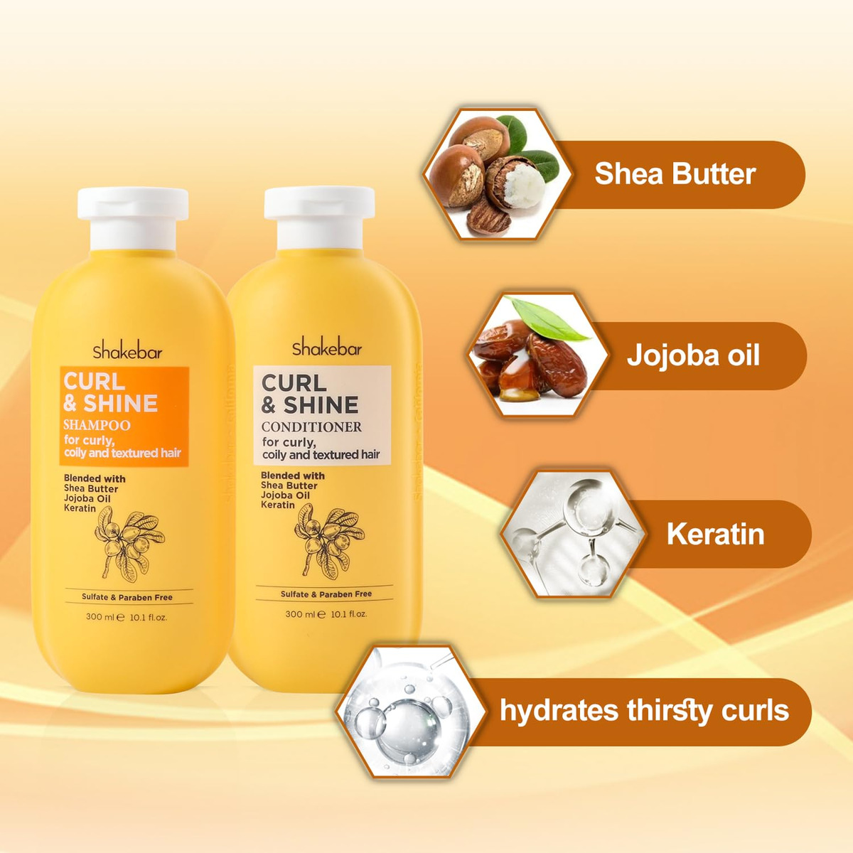 Conjunto de shampoo e condicionador Curl – Shampoo para cabelos cacheados: formulado para cuidar dos cachos. A espuma rica e cremosa limpa suavemente da raiz às pontas, nutre e hidrata, retém a umidade no núcleo e deixa os cachos com um brilho saudável e cheios de elasticidade. – Cuidados com os ingredientes naturais: manteiga de karité natural e óleo de jojoba, ricos em multivitaminas e nutrientes necessários para o cabelo. Hidrata e suaviza profundamente os cabelos crespos. – Tratamento capilar com queratina: o conjunto de shampoo e condicionador de queratina ajuda a rejuvenescer os cabelos danificados e secos. Remove eficazmente o acúmulo de produtos, promove o tratamento profundo dos cabelos danificados e restaura a barreira protetora natural do couro cabeludo. – Conjunto de shampoo e condicionador suave sem sulfato: produtos de xampu e condicionador Shakebar Curly Sem sulfato, sem parabenos, sem óleo mineral, sem glúten e sem resíduos. Livre de crueldade, não testado em animais. – Condicionador Curl & Shine: use o condicionador após a lavagem todos os dias para adicionar mais umidade e nutrientes ao cabelo, deixando os cachos macios, elásticos, tridimensionais, naturais e mais gerenciáveis.