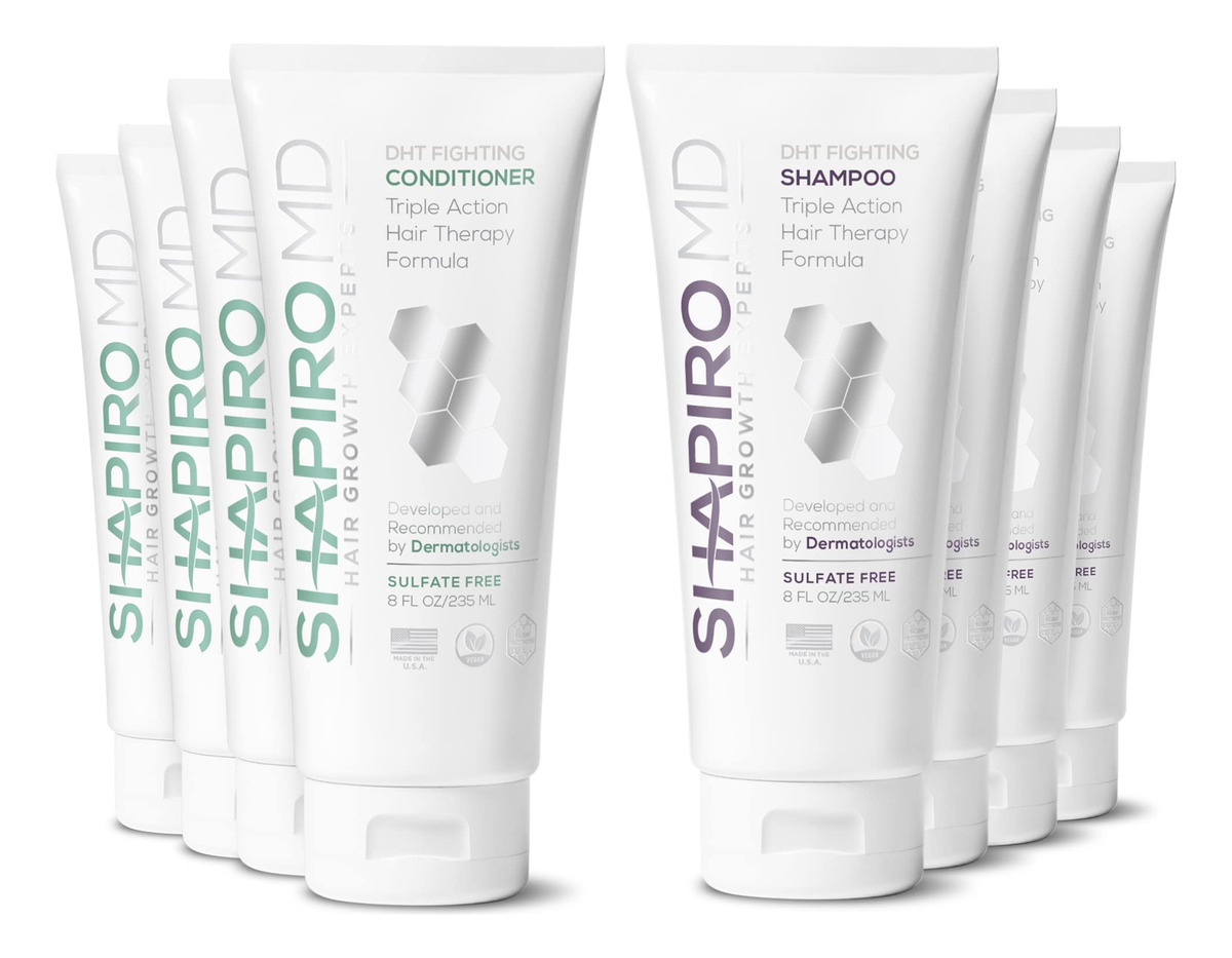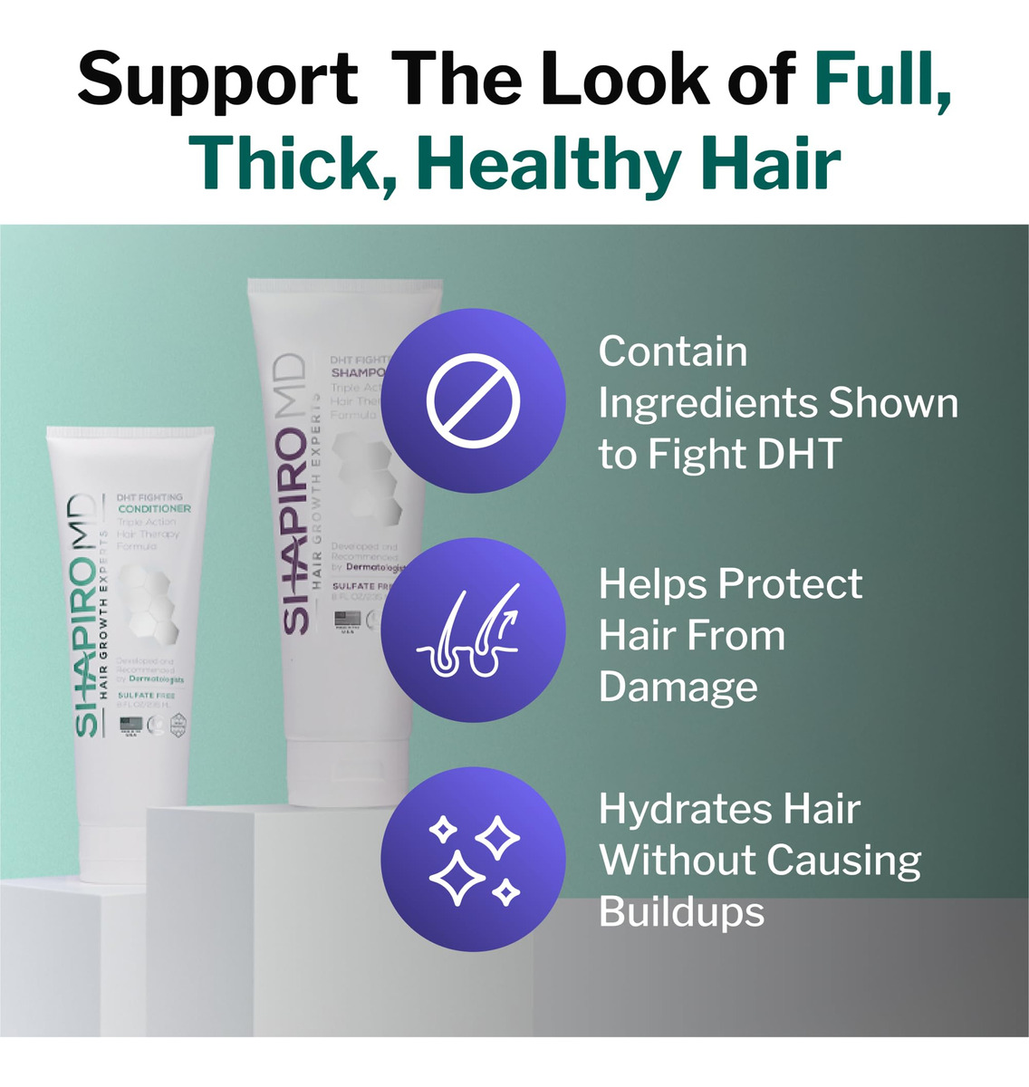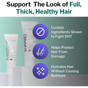 O conjunto de shampoo e condicionador para queda de cabelo da Shapiro MD foi projetado para hidratar e nutrir profundamente seu cabelo por dentro para fazer com que pareça mais saudável e cheio. Ele contém nossos ingredientes naturais patenteados que foram demonstrados em estudos clínicos para ajudar a combater os efeitos da DHT (diidrotestosterona). Acredita-se que o DHT seja a principal causa de perda de cabelo. Esta fórmula patenteada foi projetada para uso por homens e mulheres de todos os tipos de cabelo. – COMBATE O DHT – A queda de cabelo geralmente é causada pelo excesso (DHT) no corpo. Os dermatologistas Dr. Steven Shapiro MD e Dr. Michael Borenstein desenvolveram a fórmula exclusiva de ação tripla nos produtos Shapiro MD para impedir o DHT. – CABELOS VISIVELMENTE MAIS GROSSOS E MAIS CHEIOS – Nosso shampoo e condicionador de ação tripla ajudaram dezenas de milhares de homens e mulheres a mudarem sua aparência para melhor. Se você não vê cabelos mais grossos e cheios em nossa garantia de satisfação de 60 dias, basta solicitar um reembolso. – HOMENS E MULHERES – Projetado para ajudar homens e mulheres a obter cabelos mais grossos e cheios. A maioria dos especialistas concorda que o DHT é o principal culpado pela queda de cabelo. Nossa formulação avançada é a maneira mais confiável de obter cabelos mais espessos e cheios, com base em décadas de pesquisas científicas sobre a causa raiz da queda de cabelo. – PODEROSOS E SEGUROS – Os produtos da Shapiro MD contêm 3 ingredientes poderosos que combatem a DHT de ocorrência natural que ajudaram dezenas de milhares de pessoas a melhorar a aparência espessa e completa de seus cabelos. Nossa formulação patenteada contém as quantidades precisas de cada ingrediente para resultados máximos. – INSTRUÇÕES: Aplique o shampoo nos cabelos molhados, massageie e deixe agir por 2 a 5 minutos. Enxaguar. Aplique o condicionador nas mãos para misturar bem antes de aplicar no couro cabeludo. Deixe agir por pelo menos 1 a 2 minutos antes de enxaguar.