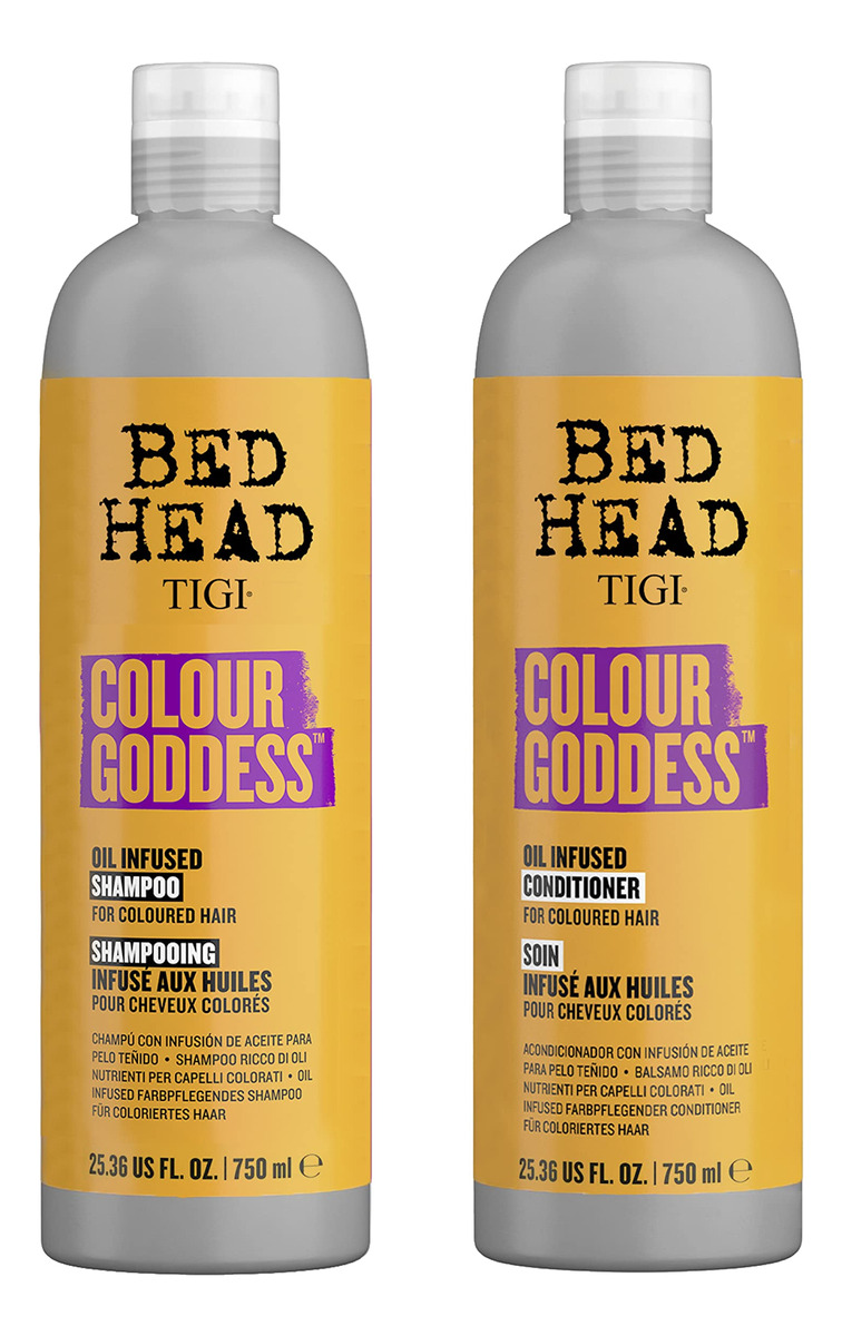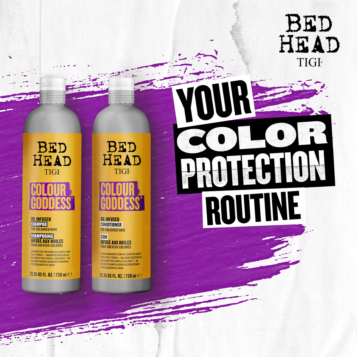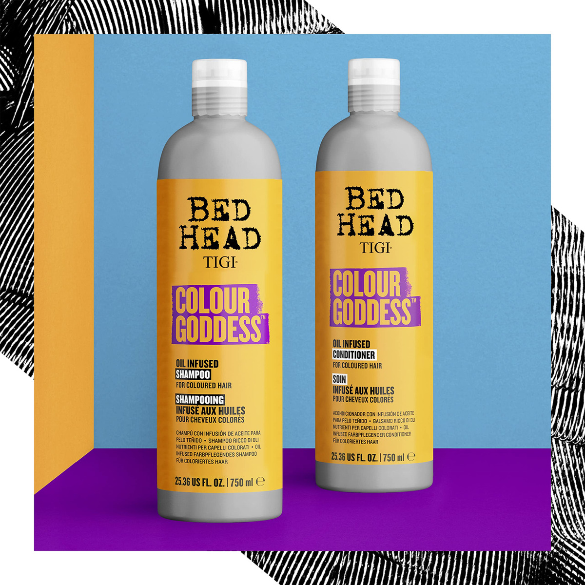 Shampoo e condicionador TIGI Bed Head para cabelos coloridos Colour Goddess com óleos de amêndoa doce e coco 2 x 25,36 fl oz – Shampoo e condicionador para cabelos coloridos – O shampoo colorido nutre, suaviza e suaviza os cabelos coloridos – Ambos os produtos para cabelo protegem a cor e realçam a vibração das cores – O conjunto de xampu e condicionador Bed Head by Tigi Colour Goddess contém 7 Shampoo de 50 ml e condicionador de 750 ml