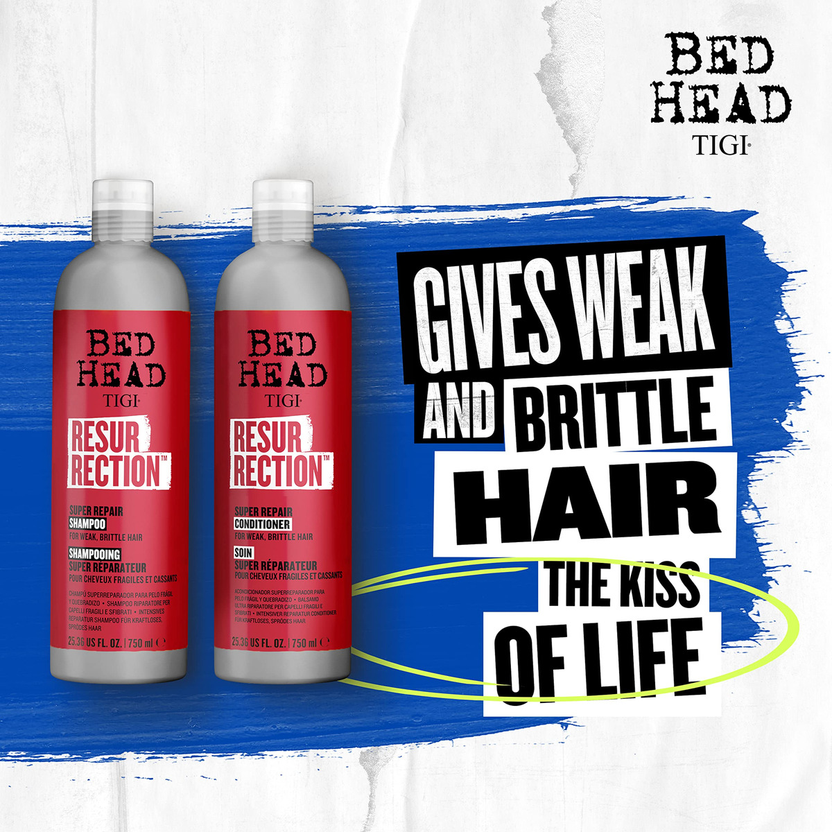 Shampoo e condicionador TIGI Bed Head para ressurreição de cabelos danificados infundidos com The Resurrection Plant 2 x 25,36 fl oz – Shampoo e condicionador Bed Heads Resurrection com formulações reparadoras poderosas; novo por fora e igualmente épico por dentro – Shampoo e condicionador reparadores profissionais para cabelos danificados – Infundidos com a planta da ressurreição, esses produtos para o cabelo nutrem, hidratam e ajudam a reparar os danos externos ao cabelo – Deixam os cabelos danificados sensação de suavidade, resistência e aparência mais saudável — essa dupla de xampu e condicionador é ótima para Cabelos fracos, quebradiços e quimicamente tratados que precisam de cuidados e reparos — Depois de lavar com o Shampoo Resurrection da Bed Heads, aplique o condicionador Resurrection do comprimento médio às pontas e enxágue