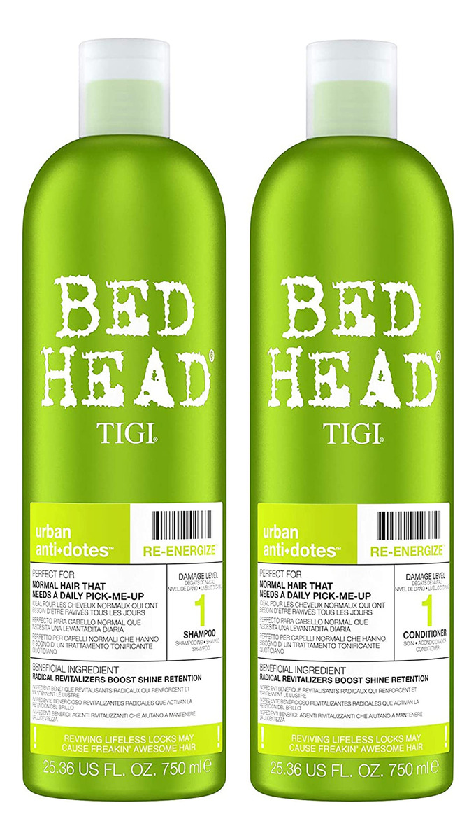 Shampoo e condicionador diários Bed Head by TIGI Urban Antidotes ReEnergize 25,36 fl oz 2 unidades – Shampoo e condicionador profissionais diários para cabelos normais – O shampoo de limpeza profunda ajuda a remover a sujeira e a sujeira do cabelo – O condicionador brilhante suaviza, amacia e desembaraça o cabelo – Ótimo para o cuidado diário do cabelo e seguro para uso em cabelos coloridos – O conjunto de xampu e condicionador Bed Head by TIGI Urban Antidotes ReEnergize contém 25 Shampoo de 36 fl oz e condicionador de 25,36 fl oz