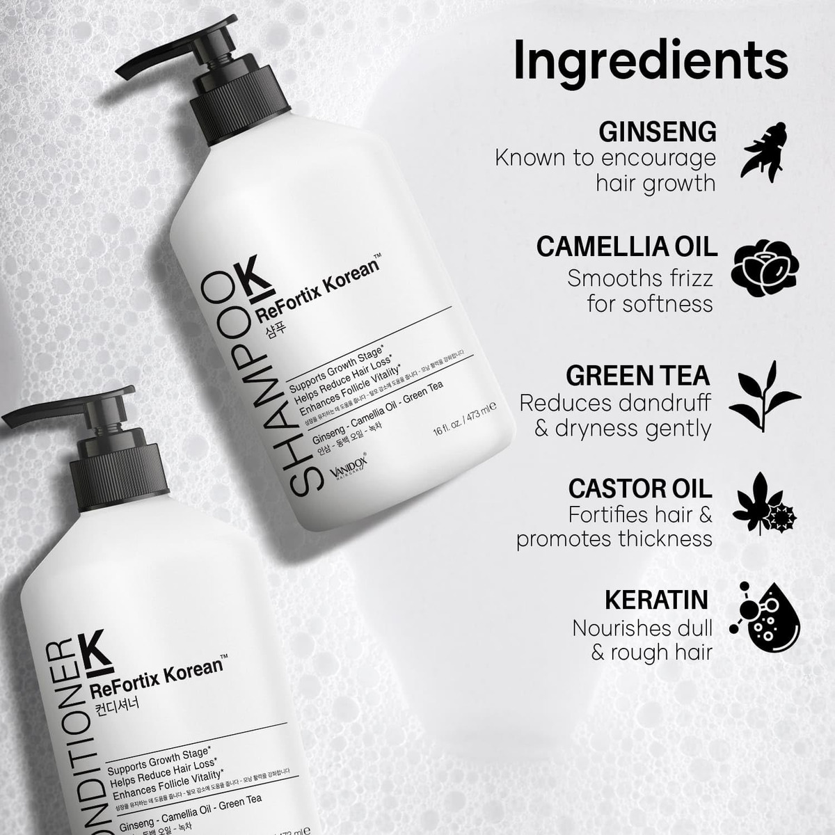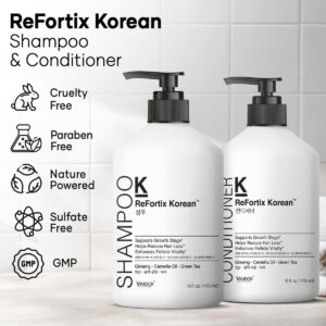Descubra o segredo para um cabelo mais saudável e brilhante com nosso conjunto de shampoo e condicionador coreano ReforTix, uma mistura poderosa de ingredientes naturais como ginseng, chá verde e óleo de camélia. Este conjunto sem sulfato e sem parabenos é especialmente formulado para hidratar, nutrir e fortalecer o cabelo enquanto promove a saúde do couro cabeludo. Se você tem cabelos secos, danificados ou tingidos, nossa fórmula fornece hidratação profunda com ácido hialurônico e restaura o brilho sem aumentar o peso. Inspirado nos produtos coreanos para o cuidado do cabelo, nosso conjunto de shampoo e condicionador é suave o suficiente para o uso diário e perfeito para todos os tipos de cabelo. A mistura de extratos de ginseng e chá verde funciona para energizar e rejuvenescer o couro cabeludo, ajudando a reduzir a queda de cabelo e melhorando a saúde geral do cabelo. Enquanto isso, o óleo de camélia oferece umidade duradoura e um acabamento sedoso. – Conjunto de shampoo e condicionador coreano ReforTix – Infundido com ginseng, extrato de chá verde e óleo de camélia, este conjunto aproveita o poder da natureza para nutrir e fortalecer profundamente seu cabelo, promovendo uma aparência visivelmente mais forte e saudável. – Shampoo e condicionador coreano ReforTix para apoio à queda de cabelo – Formulado para ajudar a recuperar células foliculares fracas por meio de fornecimento fornecendo nutrientes essenciais que melhoram a capacidade de gerenciamento para ajudar a reduzir a queda de cabelo. Promove a saúde do couro cabeludo e fortalece as raízes para minimizar a queda de cabelo, incentivando cabelos mais cheios e com aparência mais grossa. – Shampoo e condicionador coreano ReforTix para apoiar o crescimento do cabelo – Enriquecido com ervas e vegetais potentes, este shampoo nutre o couro cabeludo e as raízes para apoiar o crescimento natural do cabelo, adicionando volume para cabelos mais espessos e saudáveis. – Ajuda a restaurar o equilíbrio do couro cabeludo – Feito com extratos naturais suaves para ajudar a manter um couro cabeludo saudável, reduzindo o ressecamento descamação e escamação. Deixa o cabelo revigorado e revitalizado a cada lavagem, adequado para uso regular e para todos os tipos de cabelo. – Hidrata e suaviza – Hidrata profundamente cada fio, restaurando o brilho e a maciez naturais sem deixar o cabelo pesado. Formulado com ingredientes nutritivos para fortalecer e rejuvenescer seu cabelo. Formulado sem sulfatos e parabenos, garantindo uma experiência suave e limpa adequada para todos os tipos de cabelo.