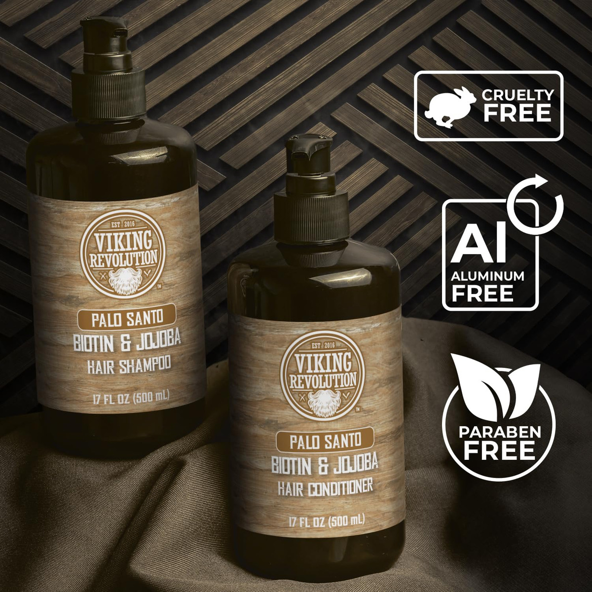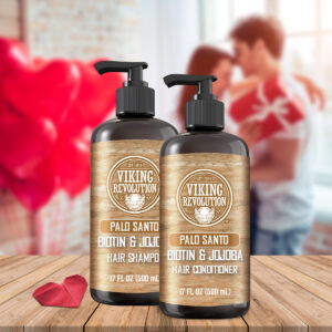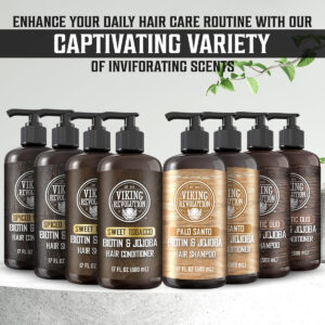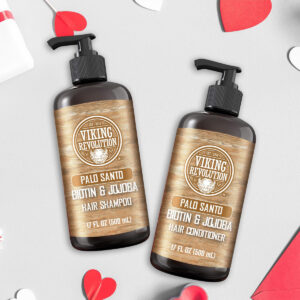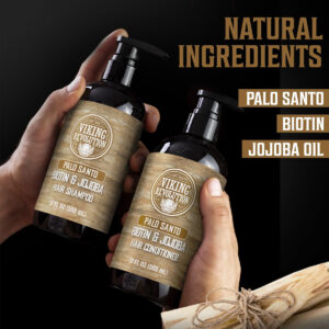 Conjunto de xampu e condicionador masculino Viking Revolution Palo Santo com biotina e óleo de jojoba – Shampoo e condicionador de cabelo naturais para homens com vitamina B5 – Shampoo masculino para cabelos finos (17 onças) – Sem coceira ou irritação: com o shampoo e condicionador masculino Palo Santo, diga adeus à coceira e se livre da caspa. Lave e condicione seu cabelo, tenha uma ótima aparência e sinta-se bem. – Palo Santo Scent: este conjunto de shampoo e condicionador para homens é feito com jojoba e azeite de oliva de excelente qualidade para proporcionar a hidratação mais profunda e deixar seu cabelo cheirando bem e sentindo um frescor incomparável em cada banho. – Shampoo masculino para cabelos finos – Nosso conjunto de shampoo e condicionador de biotina natural para homens também tem um ingrediente poderoso para combater a queda de cabelo e queda de cabelo: Biotina. Nosso conjunto de xampu e condicionador de biotina é formulado para funcionar em todos os tipos de cabelo e manter a cor segura, ao mesmo tempo em que promove cabelos frescos e limpos. – Bomba fácil de usar – Ao conectar a bomba aos nossos frascos de xampu e condicionador sem sulfato, certifique-se de que a bomba esteja bem rosqueada no frasco. Gire o bico no sentido anti-horário, algumas rotações, e o dispensador se abrirá. Com apenas algumas bombas, você terá o melhor banho da sua vida! – A Promessa Viking: Se, por algum motivo, você não estiver completamente satisfeito, basta entrar em contato conosco e cuidaremos disso.