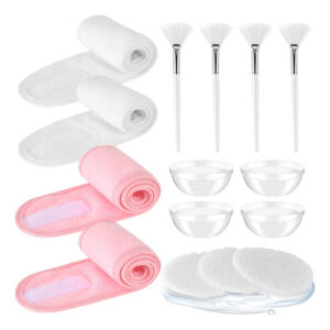 Conjunto de suprimentos estéticos para tratamentos faciais de 15 peças de esponjas estéticas 4 escovas faciais Esteticista 4 bandanas faciais 4 tigelas de estética facial para tratamentos faciais Suprimentos estéticos Especificações: Material: plástico Cor: branco Tamanho: comprimento total das escovas de ventilador é de 6 polegadas, a faixa facial de spa tem cerca de 23,6 polegadas de comprimento, esponja de limpeza facial comprimida para esteticistas O tamanho é: 2,3 x Quantidade de 0,2 polegadas: 27 Características: É adequado para spa, cuidados pessoais com a pele, salão de beleza, casa e outros lugares. Você pode compartilhá-lo com sua família ou amigos. – 1. Pacote econômico: você receberá 15 peças de esponjas estéticas 4 peças de escovas faciais Esteticista 4 peças de bandanas faciais Esteticista (branca e rosa) 4 peças Estetician Bowls Facial. Este é um conjunto ideal de ferramentas de cuidado facial. Quantidade suficiente para seu uso diário e substituição. – 2. Esponjas estéticas: esponja de limpeza facial comprimida para esclerose o tamanho do esteticista é: 2,3 x 0,2 polegadas, pode se expandir rapidamente após a absorção de água, as esponjas faciais são feitas de pás de madeira, elásticas e não são fáceis de deformar, ocupam pouco espaço, fácil de transportar. – 3. Esteticista facial: a faixa facial Spa tem cerca de 23,6 polegadas de comprimento e 3 polegadas de largura (tamanho desdobrado). Com design de velcro, você pode ajustar a posição do velcro de acordo com a circunferência da cabeça, lavável e reutilizável, pode ser usada para cuidados com a pele e esportes. – 4. Esteticista de escovas faciais: o comprimento total das escovas de ventilador é de 6 polegadas, a largura da a cabeça da escova é de cerca de 1,6 polegadas. É feito de cerdas sintéticas e cabos de plástico. Cada um é embalado individualmente. É macio e pode ser usado por muito tempo. Pode ser usada para aplicar lama e argila em pó. – 5. Estetician Bowls Facial: as tigelas de spa têm um diâmetro de 2,8 polegadas e uma altura de 1,25 polegadas, feitas de material acrílico. Essas tigelas de máscara facial são adequadas para máscaras faciais, máscaras de argila, loções corporais, cremes corporais e outros produtos para a pele e podem ser facilmente colocadas em bolsas de cosméticos ao viajar ou na bolsa.