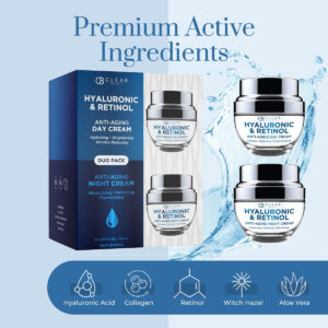 Liberte o poder da juventude com nosso conjunto de cremes diurnos e noturnos com infusão de ácido hialurônico e retinol. Experimente a urgência de uma pele revitalizada e radiante, pois essa dupla dinâmica trabalha incansavelmente para transformar sua tez dia e noite. Nosso creme de dia, enriquecido com ácido hialurônico, repõe os níveis de umidade, hidratando e preenchendo instantaneamente a pele para um brilho radiante e úmido. Ele cria uma barreira protetora que retém a umidade, mantendo a pele hidratada durante todo o dia. Aproveite a urgência de suas propriedades hidratantes e deixe sua pele brilhar com uma nova vitalidade. Quando o sol se põe, nosso creme noturno entra em ação para fazer sua mágica. Infundido com Retinol, ele rejuvenesce a pele enquanto você dorme, reduzindo a aparência de linhas finas e rugas e promovendo uma tez mais suave e jovem. Desperte com uma pele nutrida, firme e revitalizada. Para liberar todo o potencial dessa dupla potente, comece sua rotina de cuidados com a pele aplicando o Creme de Dia pela manhã. Massageie suavemente na pele limpa, permitindo que os ingredientes hidratantes penetrem profundamente. Ao cair da noite, limpe a pele e aplique generosamente o creme noturno, permitindo que o poder rejuvenescedor do Retinol faça sua mágica enquanto você dorme. Abrace a urgência do nosso conjunto de cremes diurnos e noturnos, com infusão de ácido hialurônico e retinol, e testemunhe a transformação de sua pele. Eleve sua rotina de cuidados com a pele e experimente o brilho juvenil que o espera. Descubra o segredo da beleza que desafia o envelhecimento e deixe sua pele brilhar com um renovado senso de urgência. – HIDRATAÇÃO E REJUVENESCIMENTO: Nosso conjunto de cremes hidratantes diurnos e noturnos, com ácido hialurônico e retinol, proporciona hidratação e rejuvenescimento profundos para sua pele. Diga olá à pele carnuda, hidratada e com aparência jovem. – INGREDIENTES PODEROSOS: Experimente os benefícios do ácido hialurônico e do retinol em nosso conjunto duplo. O ácido hialurônico retém a umidade, mantendo a pele hidratada e macia, enquanto o retinol promove a renovação celular, reduzindo a aparência de linhas finas, rugas e tons de pele desiguais. – FEITO NA COREIA DO SUL: confie na qualidade dos cuidados com a pele sul-coreanos com nosso conjunto duplo. Feito com experiência e cuidado na Coreia do Sul, este conjunto combina os melhores ingredientes para oferecer resultados visíveis e nutrir sua pele. – Rotina fácil de dia e noite: nosso conjunto duplo foi projetado para uso fácil e conveniente. Aplique o creme hidratante diurno pela manhã para hidratar e proteger a pele durante o dia e use o creme noturno antes de dormir para ajudar a reparar e rejuvenescer a pele enquanto dorme. – PELE JOVEM E RADIANTE: obtenha uma tez jovem e radiante com nosso conjunto duplo de cremes hidratantes diurnos e noturnos. A combinação de ácido hialurônico e retinol ajuda a melhorar a textura da pele, minimizar a aparência dos poros e dar à pele um brilho saudável. – GARANTIA DE DEVOLUÇÃO DO DINHEIRO: Se você tiver algum problema ao usar o creme diurno e noturno Clear Beauty, entre em contato a qualquer momento para obter ajuda de nossos especialistas em cuidados com a pele. Responderemos o mais rápido possível! Se você não estiver totalmente satisfeito, nós o reembolsaremos integralmente.