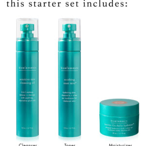 Conjunto inicial Bioelements de 3 etapas: pele sensível — inclui óleo de limpeza, tônico calmante Reset Mist e hidratante hidratante diário Barrier Fix — Vegano, sem glúten — Nunca testado em animais — B07NN23H9R