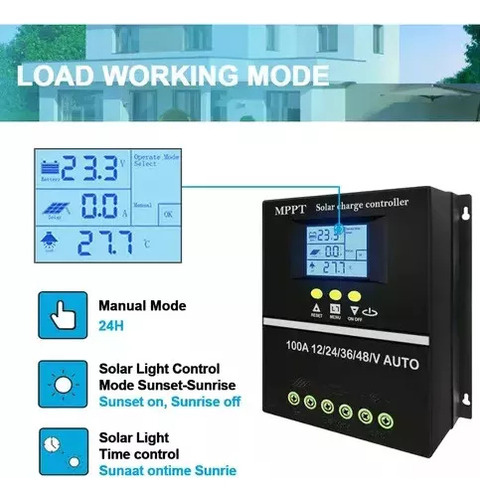 Controlador de carga solar MPPT com foco automático 24V/100Act a value |