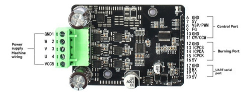 Interface de direção CW/CCW integrada, suspensa para CW no sentido horário, GND em curto-circuito para direção CCW no sentido anti-horário. Porta serial UART a bordo. Os usuários podem controlar o módulo através do protocolo de porta serial.