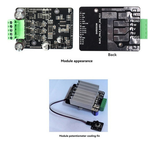 Este produto não é indutor módulo de acionamento de motor BLDC desenvolvido para o chip de acionamento SNR8503M, o chip é integrado ao circuito especial de acionamento de motor não indutivo, com circuito periférico simples, função perfeita, tamanho pequeno,
