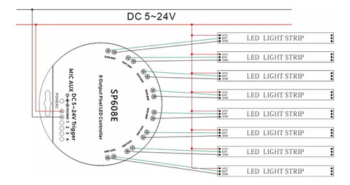 Controlador De Música Sp608e Ws2812b Saída De Sinal De 8 Can