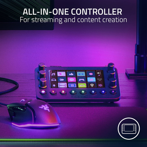 Controlador Razer Stream: teclado tudo-em-um para streaming – 12 teclas táteis comutadas – 6 botões analógicos de toque – 8 botões programáveis – Projetado para ser compatível com PCs e Macs – Controlador de streaming tudo-em-um: gerencie facilmente sua transmissão com atalhos para vários programas organizados em designs e ícones personalizados para uso intuitivo – 12 teclas hápticas comutadas: vincule uma variedade infinita de comandos e macros. Personalize seus ícones para facilitar a navegação visual e ajuste seu feedback tátil para obter o nível ideal de resposta tátil – 6 botões analógicos de toque: modifique convenientemente os níveis de seus canais de áudio, conteúdo multimídia e outros canais e gerencie-os rapidamente com a tela sensível ao toque LCD dinâmica do controlador – 8 botões programáveis: programe-os para alternar instantaneamente entre até 8 designs de teclas hápticas diferentes ou simplesmente use-os como uma maneira mais rápida de executar o ações de uso comum – Projetado para realizar várias tarefas com eficiência: comandos de grupo em formato dedicado designs e no modo dinâmico para alterar automaticamente os perfis dependendo do aplicativo detectado – Compatível com PC, Mac e os principais programas: suporte integrado para OBS Studio, Streamlabs, Twitch, Discord, Spotify, Adobe Lightroom Classic, Photoshop, Premiere Pro, After Effects, Illustrator e Final Cut Pro