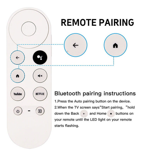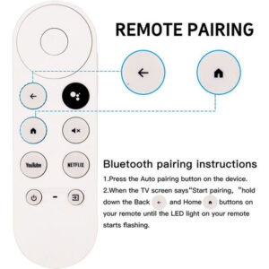 [Compatibilidade remota] Compatível com o Googlle-Chromecast 4K TV Snow Streaming Player G9N9N/GA01920-US/GA01923-US/GA02463-US/GA01409-US/GA02464-US. ele serve como um substituto direto para o Googlle Controle remoto Chromecast 4K (Snow). [Série de TV aplicável] Controles de substituição remota de TV Compatíveis com Chromecast (Googlle-TV), para Chrome-cast com Googlle-TV, para GA01919-US, para GA01920-US, para GA01923-US, requerem Chrome-Cast (Googlle-TV) [Fácil Para [Pag] Pressione e segure as teclas BACK e HOME simultaneamente até ver uma luz pulsante no controle remoto. Quando a luz aparecer, solte as teclas e o controle remoto estará pronto.