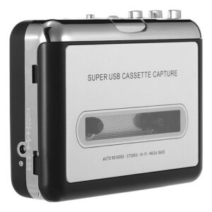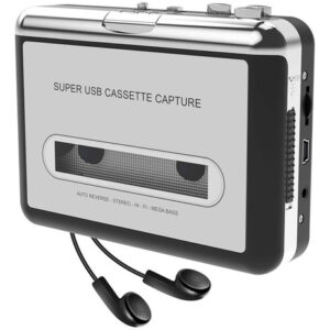 O USB Cassette Player é uma fita USB portátil que funciona com todos os tipos de fitas. Ele tem uma conexão USB fácil de usar para converter a música em suas fitas em arquivos MP3. Você pode ouvir MP3 em seu computador, carregá-los em seu reprodutor de música portátil ou gravá-los em um CD (não incluído) e ouvir em seu carro.