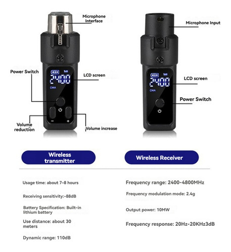 Conversor De Microfone Sem Fio Xlr, Transmissor Recarregáve