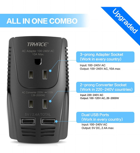– Produto: Convertidor De Voltaje TryAce 220 V a 120 V 2000 W , Negro
