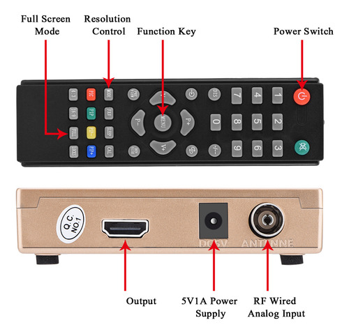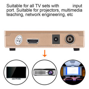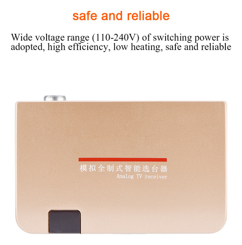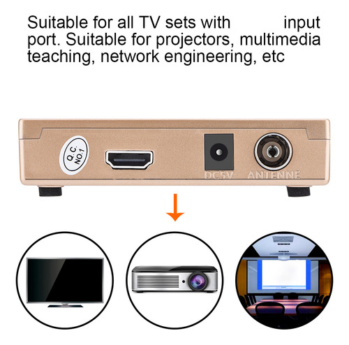 operação simples, conveniente e clara, operação de volume e canal na tela da janela seletora. O sinal de recepção é estável e confiável e pode receber e armazenar programas de TV de 251 canais, que podem atender às necessidades da rede de TV a cabo no futuro. É adotada uma ampla faixa de tensão (110-240 V) de potência de comutação, alta eficiência e baixo aquecimento, seguro e confiável. Equipado com desligamento por controle remoto, desligamento regular e 10 minutos sem sinal função de desligamento automático. Adequado para todos os aparelhos de TV com porta de entrada HDMI. Adequado para projetores, ensino multimídia, engenharia de rede, etc.