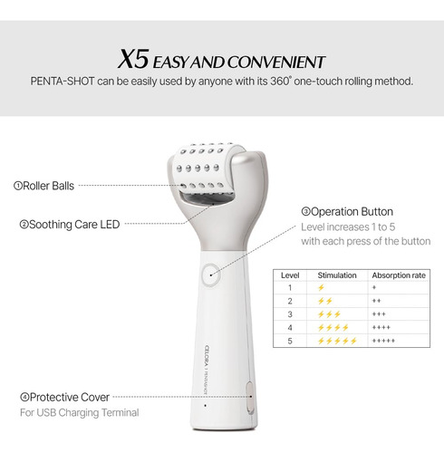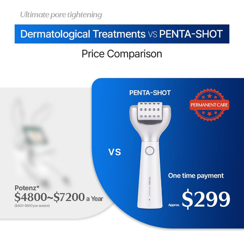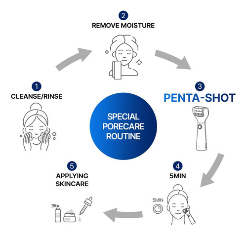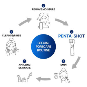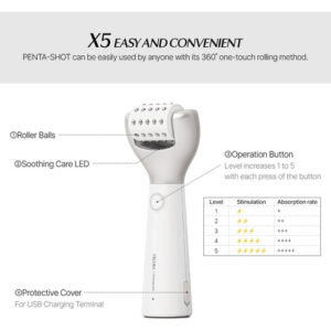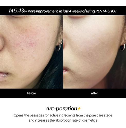 Apresentando o Pentashot da CELORA.BY, o dispositivo definitivo para reduzir os poros e melhorar o cuidado da pele. Com nossa tecnologia AP exclusiva, ela penetra com segurança na camada dérmica para reduzir os poros, criando uma zona de autorrenovação. A tecnologia POTENSION exclusiva da Pentashot aumenta a absorção cosmética e oferece uma solução caseira completa para controlar poros, sebo, imperfeições e luminosidade da pele. O LED vermelho embutido minimiza a irritação da pele e o sistema de desligamento automático protege contra sobretensões e sobrecargas. Graças ao guia de voz para determinar o nível e o tempo de uso, é incrivelmente fácil de usar. Melhore sua rotina de cuidados com a pele com o Pentashot e aproveite a tecnologia avançada de cuidados com a pele com apenas um movimento giratório!