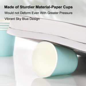 AOZITA [pacote 210] Copos de papel de 3 onças, copos de enxaguatório bucal azul-celeste, copos de banheiro descartáveis, copos de café expresso, copos de papel para festas, piqueniques, churrascos, viagens e eventos — Pacote econômico de 210 copos de papel azul — O pacote a granel de copos de papel azul de 3 onças é ideal para copos de enxágue bucal, copos de café expresso, copos de banheiro, copos de bebidas, copos de remédios e copos de enxágue. – Papel seguro e saudável – Se você está procurando a conveniência de copos descartáveis sem o impacto ambiental do plástico. O copo de papel é livre de BPA, feito de papel premium de qualidade alimentar, mais saudável e ecológico, é uma ótima alternativa ao plástico tradicional. – À prova de vazamentos e durável – O aro enrolado oferece rigidez e resistência para evitar derramamentos e deformações indesejados. O forro de polietileno revestido o torna um copo de papel resistente a vazamentos que não ficará fraco ou encharcado. Nossos copos descartáveis de papel para água são adequados para bebidas quentes e frias. Você também pode optar por beber uma xícara de café quente ou um suco gelado com nossa xícara. – Design exclusivo em azul celeste – Design de cores vibrantes. Os copos de papel têm o tamanho certo para enxaguar a boca após escovar ou fornecer água suficiente para lavar a louça; o tamanho pequeno é perfeito para casas, apartamentos, condomínios, trailers, campistas e cabines. – COMPRA SEM RISCOS – Se você tiver algum problema com nossos produtos, não hesite em entre em contato conosco, faremos o possível para encontrar uma solução satisfatória para você dentro de 24 horas. No entanto, temos certeza de que você ficará impressionado com nossos copos de papel bem elaborados, duráveis e com design prático durante seu uso diário.