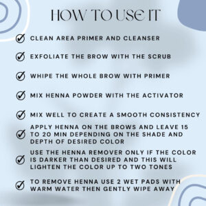 All in Beauty Henna é um produto revolucionário desenvolvido com os melhores e mais naturais ingredientes possíveis. Ele dá às suas sobrancelhas uma cor incrível e natural, com cobertura cinza total. A cor nas sobrancelhas dura de 20 a 30 dias e na pele por pelo menos uma semana. Feito com plantas nativas de henna da mais alta qualidade, este produto é perfeito para pessoas que não têm tempo para aplicar maquiagem diariamente. Colore os pelos da sobrancelha, bem como a pele por baixo, eliminando assim a necessidade de retoques diários. É ideal para acentuar suas características naturais ao pintar e modelar suas sobrancelhas. Está disponível em 6 tons, que você pode misturar e combinar para obter o tom que procura. Instruções: Esfolie a sobrancelha com o esfoliante, lave com shampoo e água morna, remova o shampoo e a área seca. Limpe toda a sobrancelha com o formato de sobrancelha Primer Map usando o Brow Paste Misture henna usando a pipeta, adicione água fervida/ativador quente a uma colher plana de pó de henna. Essa quantidade pode variar devido à quantidade necessária para a tigela de seu cliente em particular. Misture bem para criar uma consistência cremosa suave; adicione mais gotas se necessário, pois a temperatura da água contribuirá para a velocidade com que a hena engrossa. Alternando entre as sobrancelhas, aplique henna em camadas, deixando cada camada secar. Aguarde entre 3-5 minutos na cabeça e 7 a 1 minuto no restante da sobrancelha, dependendo do resultado desejado. A hena pode ser deixada nas sobrancelhas por até 30 minutos, dependendo da tonalidade e da profundidade de cor desejadas, embora esse período de tempo seja muito raramente necessário, pois após 30 minutos a hena para de funcionar. O tempo médio necessário é de 15 minutos desde a aplicação até a primeira sobrancelha. Para remover a hena, molhe 2 compressas com água morna e coloque sobre as sobrancelhas. Deixe por um tempo curto e depois limpe suavemente. Condicione a sobrancelha com BrowOil. Para resultados incríveis, combine este produto com o ativador Henna da All in Beauty. Características do produto Ingredientes naturais e inofensivos à prova d'água de longa duração 100% cinza – Cor e tonalidade da sobrancelha de hena: conferem às sobrancelhas uma cor incrível e natural, com cobertura total de cinza. – Desenvolvido a partir de ingredientes naturais e inofensivos: feito com plantas nativas de henna da mais alta qualidade, livre de produtos químicos agressivos, este produto é ideal para peles sensíveis. – De longa duração e à prova d'água: a cor nas sobrancelhas dura de 20 a 30 dias e na pele por pelo menos duas semanas. – Adiciona volume e corpo às suas sobrancelhas: ideal para acentuar suas características naturais ao tingir e modelar as sobrancelhas. – Não causa nenhum tipo de reação alérgica como outras marcas do mercado. Disponível em uma variedade de tons e você pode misturar e combinar para personalizar a cor.
