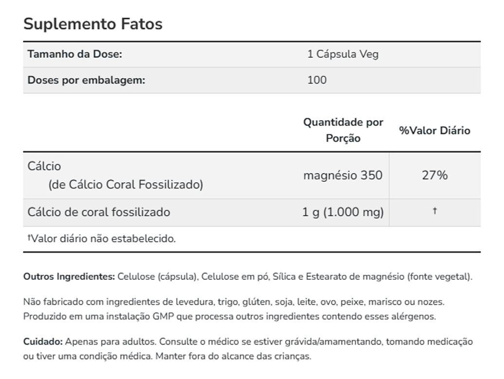 4. Rotina Simplificada: A embalagem de 100 cápsulas torna fácil adicionar o Coral Cálcio à sua rotina diária, oferecendo um fornecimento constante.