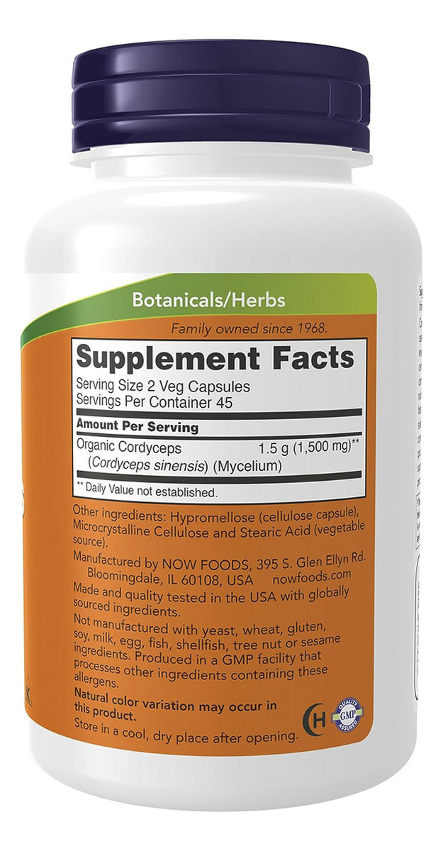 Cordyceps 750mg 90 Cápsulas Vegetais – Now Foods