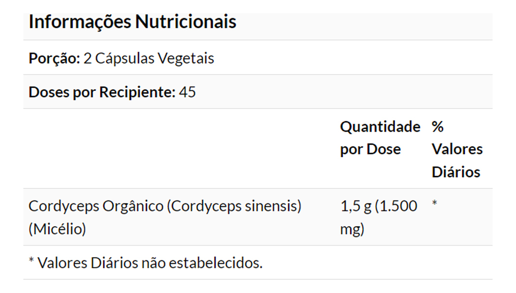 5. Composição do Produto: Cada cápsula contém 750mg do extrato de Cordyceps, um cogumelo conhecido por suas propriedades naturais. Este suplemento é livre de OGMs e ingredientes artificiais, proporcionando uma experiência pura e natural. VALIDADE LONGA