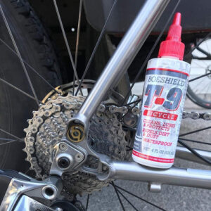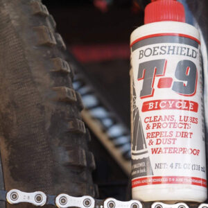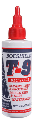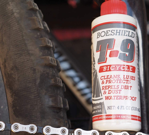 Boeshield T-9 Bicycle Chain Waterproof Lubricant and Rust Protection, 4 oz Liquid, Original Version (122183) , White – Wet, dry or in dirt, serious cyclists rely on one product to clean, lubricate and protectBoeshield T-9 does it all – Lubricate your bike chain, waterproof cables, and prevent rust with our effective all-in-one formula – Loosens rusty and corroded parts and is safe on paints, any metal surfaces, plastics, and vinyls – T-9 flushes out dirt and old lubricants, displaces moisture, and penetrates moving parts – Dries to a thin, waxy film that clings to metal for months – Developed by the Boeing company for lubrication and protection of aircraft components – Great for use in marine, bicycles, automotive, tools, RVs, and aviation