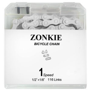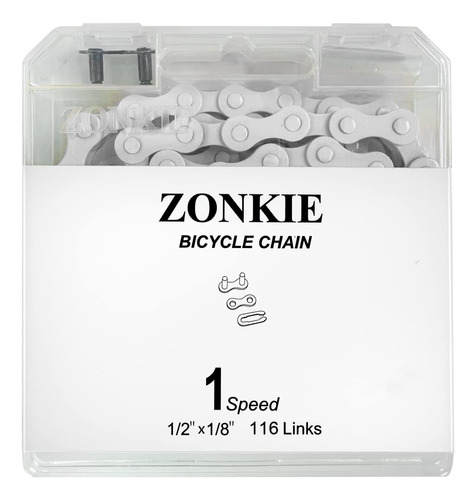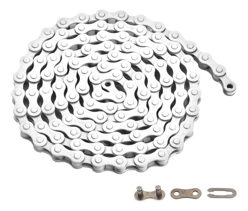 Use somente a ferramenta de corrente correta para encaixar o pino. Nunca tente inserir novamente um pino e medir a corrente cuidadosamente antes do encaixe inicial. Sempre use um novo elo de conexão ao renovar a cadeia. Em caso de dúvida, consulte um revendedor especializado em bicicletas. – Material: O corpo da corrente é feito de aço com alto teor de carbono, que é mais resistente do que o aço com baixo teor de carbono. A força máxima de tração é 850 kg – Tamanho: O tamanho da corrente é 1/2* 1/8", o que só é adequado para bicicletas de velocidade única. – Comprimento: a corrente tem 116 elos e o comprimento total é de cerca de 147,32 cm, o que pode atender ao comprimento exigido pela maioria das bicicletas de velocidade única. – Fácil de instalar: o pacote contém duas fivelas de conexão rápida, que podem conectar rapidamente a corrente e a instalação é conveniente. – Material de superfície: a superfície da corrente é envolvida por tinta de alta qualidade, o que faz com que a corrente não enferruje, tenha uma cor brilhante e não desbote.