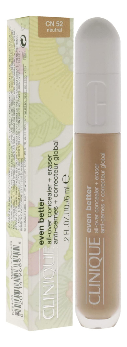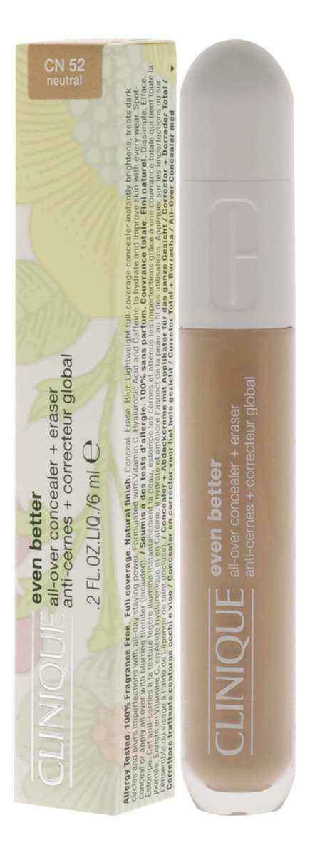 Clinique Even Better All-Over Concealer Plus Eraser — Corretivo neutro CN 52 feminino de 0,2 onças — Ilumina e reduz visivelmente a aparência de descoloração. – Preenche a aparência de linhas finas e secas – Melhora rápida na aparência das linhas.