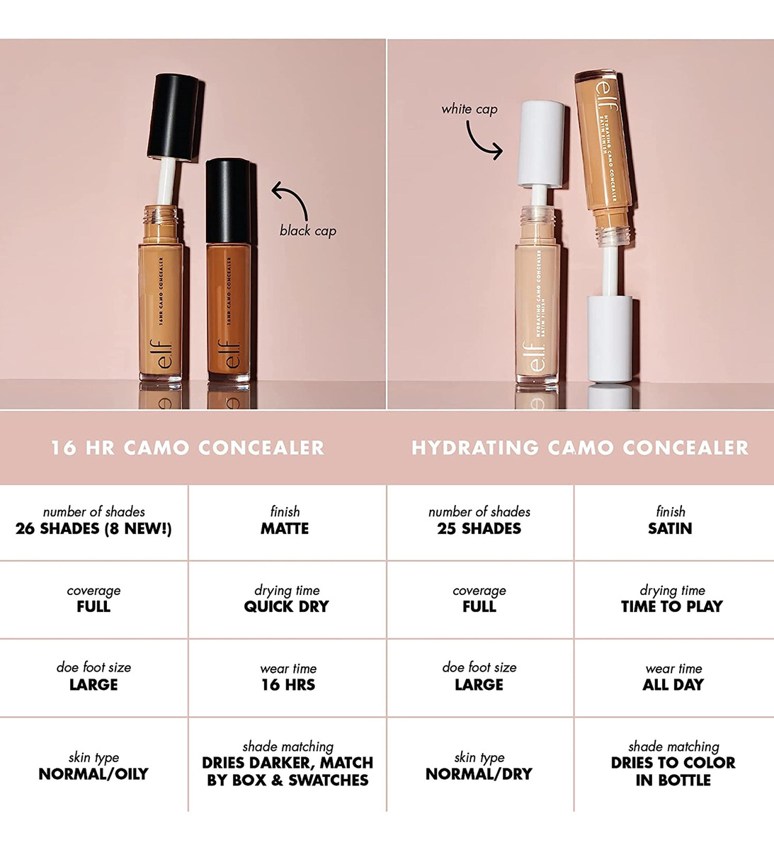 Corretivo hidratante Satin Camo da e.l.f. cosmetics — bege médio, 0,2 onças fluidas — Livre de crueldade, vegano e 100% livre de ftalatos, parabenos, nonilfenol, etoxilatos, triclosan, triclocarban, não comedogênico (não obstrui os poros!) – Aplicador de pés de corça grande