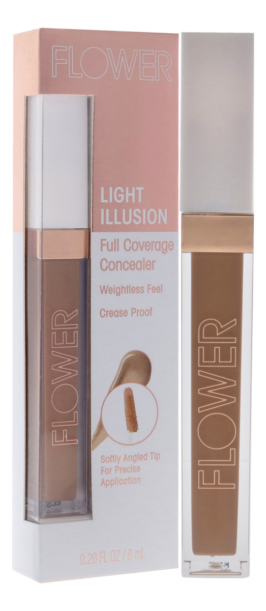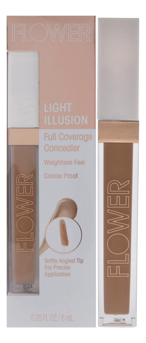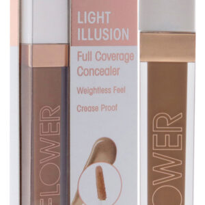 O corretivo de cobertura total Light Illusion da Flower Beauty é um corretivo de desfoque de foco suave com uma cobertura de alto desempenho. Este corretivo leve fornece iluminação difusa de olheiras com os pigmentos de desfoque exclusivos da Flower Beauty. Um corretivo de alta cobertura, ele confere um brilho sutil ao ocultar as imperfeições. A fórmula tem dupla função de acalmar e reduzir o inchaço com uma infusão de extrato de aloe e camomila. Um aumento adicional de cafeína firma e dá às áreas-alvo um aumento de antioxidantes.