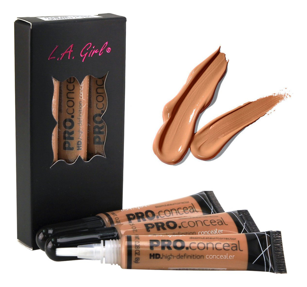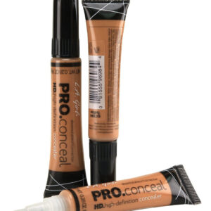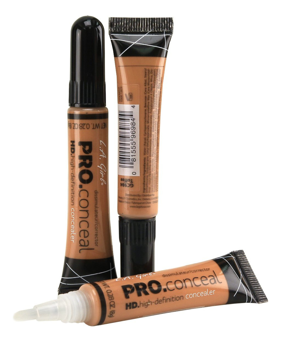 Corretivo de alta definição LA Girl HD Pro Conceal (caramelo) (pacote com 3) — Oferece cobertura completa e natural e uniformiza perfeitamente o tom da pele. — Inclui uma ponta macia para facilitar a aplicação — A fórmula de uso duradouro camufla a escuridão sob os olhos, a vermelhidão e as imperfeições da pele.