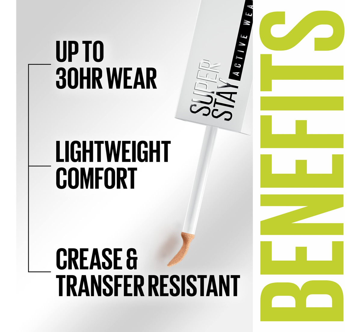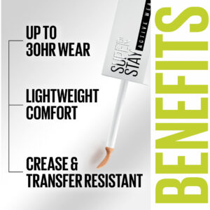 Maybelline Super Stay Liquid Concealer Makeup, Full Coverage Concealer, Up to 30 Hour Wear, Transfer Resistant, Natural Matte Finish, Oil-free, Available in 16 Shades, 57, 1 Count – Maybellines Super Stay Active Wear Concealer delivers up to 30-hour wear and full coverage; This long lasting concealer wipes out dark circles and imperfections, giving you a comfortable, natural look – Super Stay Active Wear Concealer looks and feels like skin; Transfer-resistant formula does not crease or feel cakey; Every time you apply this long lasting up to 30 hour concealer, it delivers full coverage and comfort – Maybellines Super Stay Active Wear Concealer has a comfort-curve flex applicator for even and easy application; This up to 30 hour full coverage concealer has you covered with no streaking or dragging – Create any look with Maybelline; foundation, BB creams, concealers, and setting powders for the perfect canvas, eye shadows, mascara, brow pencils, and eyeliners for any eye look and lip products, from showstopping lipstick to plumping lip gloss