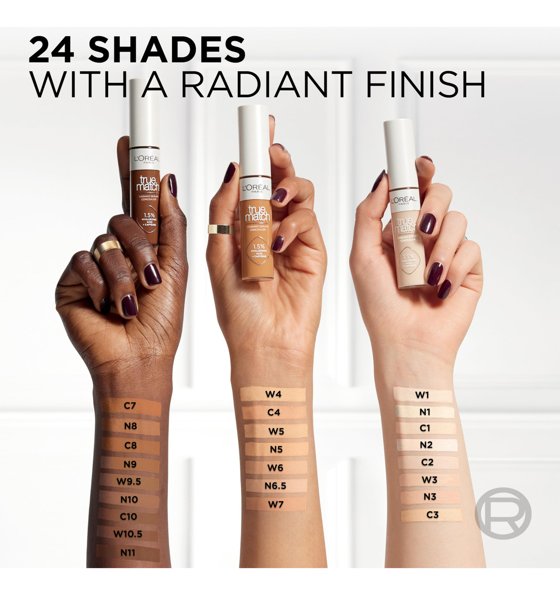 Corretivo sérum radiante LoRal Paris True Match, maquiagem iluminadora sob os olhos com 1,5% de ácido hialurônico e cafeína, C7, 0,33 onças — Cuidados com a pele e maquiagem em um toque: o corretivo de sérum radiante True Match corrige como um corretivo e hidrata como um sérum para os olhos. Nosso corretivo para olheiras diminui visivelmente as olheiras e ajuda a eliminar as linhas finas para uma área iluminada e uniforme sob os olhos – Fórmula de corretivo hidratante: nossa fórmula de corretivo sob os olhos leve e resistente a rugas, com infusão de ácido hialurônico e cafeína, fornece hidratação 24 horas e uso durante todo o dia. O aplicador de ferro de ponta plana fácil de usar oferece cobertura com apenas 1 toque – 24 tons parecidos com a pele: combine seu corretivo de maquiagem com os tons correlacionados de base True Match Super Blendable e Powder Face Makeup. Testado dermatologicamente, adequado para peles sensíveis. Esta fórmula vegana não comedogênica é livre de fragrâncias e parabenos – Porque você vale a pena: crie a aparência que quiser com nossa linha completa de maquiagem, incluindo bases, corretivos, maquiagem iluminadora, lápis de sobrancelha, paletas de sombras, batons e muito mais – L'Oreal Paris Beauty: uma empresa líder em cuidados de beleza com sede em Paris, oferecemos produtos inovadores e experiência exclusiva de especialistas em beleza em maquiagem e pele cuidado, cuidado do cabelo, estilo e cor do cabelo