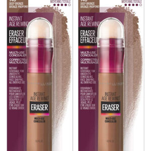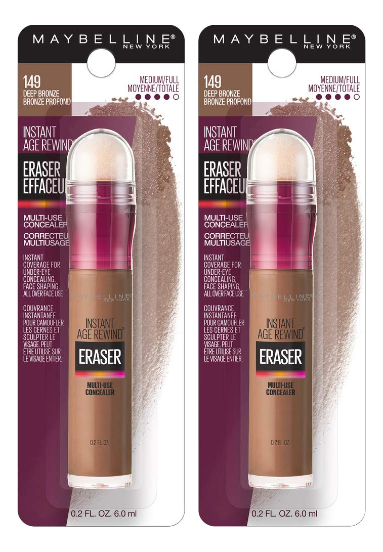Corretivo multiuso Maybelline Instant Age Rewind Eraser Dark Circles Treatment, bronze profundo, 0,2 fl oz (pacote com 2) (a embalagem pode variar) — Corretivo multiuso Maybelline Instant Age Rewind Eraser: corretivo multiuso Instant Age Rewind Eraser; apague a aparência das olheiras, corrija a aparência da vermelhidão e ilumine a aparência da pele opaca com o corretivo multiuso Instant Age Rewind Eraser: Volte no tempo com este corretivo antienvelhecimento para tratamento oftalmológico com infusão de Haloxyl; diga adeus à aparência de linhas finas, manchas, vermelhidão e olheiras e olheiras e olheiras, e olá área dos olhos radiante, bem descansada e revigorada – Best Face Forward: a Maybelline tem uma base transparente, média e total em fórmulas de base líquida, em bastão e almofada e uma variedade de corretivos, além de primers faciais, contorno, iluminador e pó prensado para ajudá-lo a criar uma tela perfeita – Maybelline tem o que você precisa para criar qualquer look: base, creme bb, corretivo e iluminador para criar uma tela, sombra, lápis de sobrancelha e delineador de olhos perfeitos para qualquer look e produtos labiais, desde batom fosco impressionante até protetores labiais naturais — Remova Maquiagem Maybelline com água micelar: use a água micelar Garnier como um removedor de maquiagem suave à noite e como um limpador facial pela manhã para preparar a pele para a maquiagem Maybelline