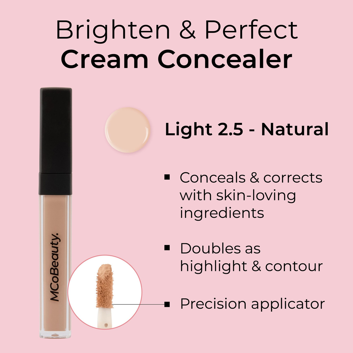 O MCObeauty BRIGHTEN & PERFECT CREAM CONCEALER é um corretivo multiuso que melhora a pele ao oferecer uma cobertura mesclável, montável e corretiva com benefícios que amam a pele. Esta fórmula cremosa desfoca a aparência de manchas, olheiras e imperfeições, deixando a pele fresca e uniforme com um acabamento natural. O aplicador embutido permite uma aplicação precisa e retoques rápidos ao longo do dia. – PERFEIÇÃO MULTIUSO: desfrute de uma cobertura misturável, montável e corretiva que faz maravilhas em manchas, olheiras e imperfeições. – BENEFÍCIOS PARA AMAR A PELE: Esta fórmula cremosa não apenas oculta, mas também cuida da pele. Ele oferece um acabamento impecável e realça sua tez com benefícios para a pele. – APLICAÇÃO DE PRECISÃO: O aplicador embutido garante uma aplicação precisa, permitindo que você atinja áreas específicas com facilidade. – ACABAMENTO NATURAL: Obtenha um acabamento natural que oculte sem parecer pesado ou endurecido, proporcionando uma aparência revigorada e revitalizada. – MAQUIAGEM LIVRE DE CRUELDADE: produzimos apenas cosméticos isentos de crueldade. Nosso corretivo Brighten & Perfect Cream é criado com cuidado e alinhado com nossos valores éticos.