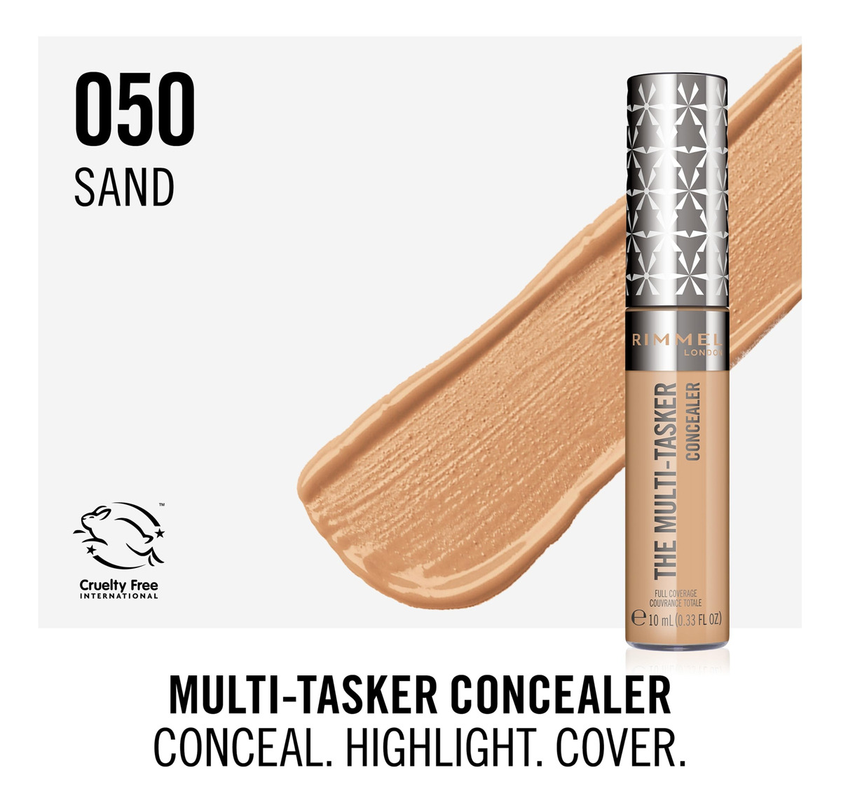 Corretivo multitarefa Rimmel London, 500 g de areia, à prova de vincos, à prova de transferência, à prova d'água, de até 24 horas de uso, fórmula vegana, 0,33 onças — O corretivo Rimmel que faz tudo e dura tanto quanto você, o corretivo Rimmel London Multitasker. – Um corretivo cremoso que cobre, ilumina e contorna. – Varinha corretiva grande de toque suave para fácil aplicação. – Um corretivo líquido com cobertura total ultra-misturável e uma fórmula vegana. – Uso e hidratação duradouros por até 24 horas. Corretivo à prova de vincos, à prova de transferência e à prova d'água que permanece firme o dia todo.