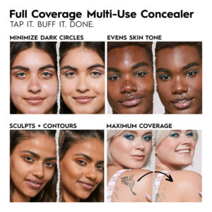 O aplicador e o pincel de duas pontas deste corretivo multiuso são convenientes para cobertura em qualquer lugar. Nossa fórmula leve e impermeável oferece cobertura total com um toque sem desbotar ou descamar. – Corretivo de cobertura total 24 horas – Esta fórmula leve e impermeável oferece cobertura total com um toque sem desbotar ou descamar para uma aparência de maquiagem com acabamento natural na pele real. – Duas pontas com aplicador embutido O confortável aplicador de pés de corça foi projetado para cobertura multiuso e aplicação precisa. Use o pincel vegano e lavável embutido para misturar rapidamente em qualquer lugar. – TOQUE NELE. POLIR ISSO. PRONTO. — Um corretivo multiuso que ajuda a minimizar a aparência de olheiras, manchas de acne, hiperpigmentação, descoloração e vermelhidão. Com infusão de vitamina E, experimente uma fórmula de cobertura total que hidrata a pele o dia todo. – Use do seu jeito – Use um tom mais claro para realçar ou um tom mais profundo para contornar as maçãs do rosto e as características faciais. Adoramos muito que também o usamos em todo o rosto como base! – PARA TODOS OS TIPOS DE PELE Esta fórmula hidratante e não comedogênica foi projetada para todos os tipos de pele, seja ela madura, seca, oleosa ou qualquer outra coisa (mesmo adequada para peles sensíveis). Fórmula vegana + livre de crueldade.