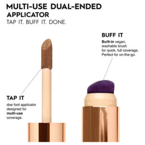 O aplicador e o pincel de duas pontas deste corretivo multiuso são convenientes para cobertura em qualquer lugar. Nossa fórmula leve e impermeável oferece cobertura total com um toque sem desbotar ou descamar. – Corretivo de cobertura total 24 horas – Esta fórmula leve e impermeável oferece cobertura total com um toque sem desbotar ou descamar para uma aparência de maquiagem com acabamento natural na pele real. – Duas pontas com aplicador embutido O confortável aplicador de pés de corça foi projetado para cobertura multiuso e aplicação precisa. Use o pincel vegano e lavável embutido para misturar rapidamente em qualquer lugar. – TOQUE NELE. POLIR ISSO. PRONTO. — Um corretivo multiuso que ajuda a minimizar a aparência de olheiras, manchas de acne, hiperpigmentação, descoloração e vermelhidão. Com infusão de vitamina E, experimente uma fórmula de cobertura total que hidrata a pele o dia todo. – Use do seu jeito – Use um tom mais claro para realçar ou um tom mais profundo para contornar as maçãs do rosto e as características faciais. Adoramos muito que também o usamos em todo o rosto como base! – PARA TODOS OS TIPOS DE PELE Esta fórmula hidratante e não comedogênica foi projetada para todos os tipos de pele, seja ela madura, seca, oleosa ou qualquer outra coisa (mesmo adequada para peles sensíveis). Fórmula vegana + livre de crueldade.
