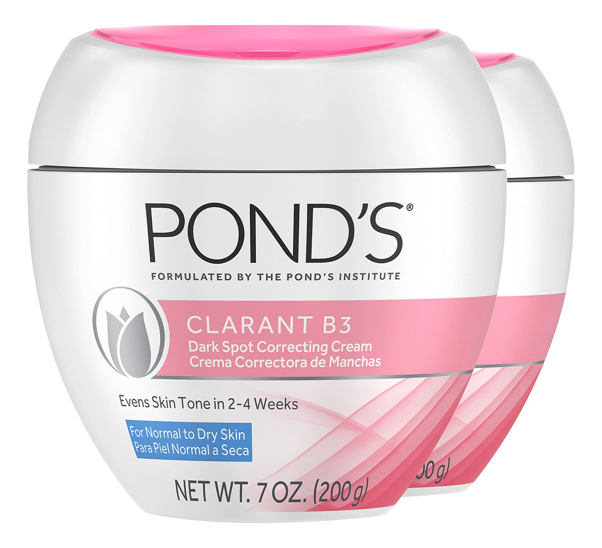Corretor de manchas escuras POND'S Clarant B3 para pele normal a seca, 7 onças (pacote com 2) — Experimente o poder transformador do creme para manchas escuras Clarant B3 da POND e adote uma tez perfeitamente uniforme, radiante e verdadeiramente sua — Perfeito para tipos de pele equilibrada a seca. Este hidratante facial rico diminui a aparência de manchas escuras em 2 a 4 semanas, ao mesmo tempo que oferece hidratação profunda – combate um tom de pele irregular. Formulado com vitamina B3 para ajudar a reduzir a aparência de descoloração facial e iluminar sua pele – a fórmula definitiva que não agride os poros. Diga adeus aos poros entupidos; nosso creme facial não comedogênico garante que sua pele permaneça limpa e livre de congestão – Confie em um clássico atemporal. Experimente a magia de uma marca que resistiu ao teste do tempo, oferecendo uma pele macia, suave e radiante por mais de 170 anos