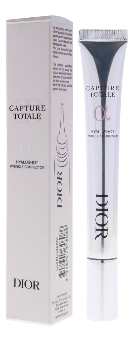 O primeiro corretor multirrugas Dior com ácido hialurônico que atua no aparecimento de sinais de rugas presentes e emergentes. Capture Totale Hyalushot é formulado com uma dupla de ácido hialurônico que tem como alvo 8 tipos de rugas faciais