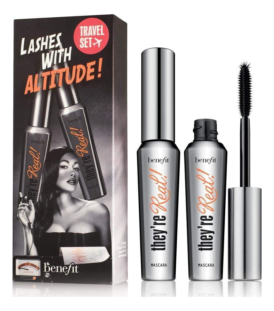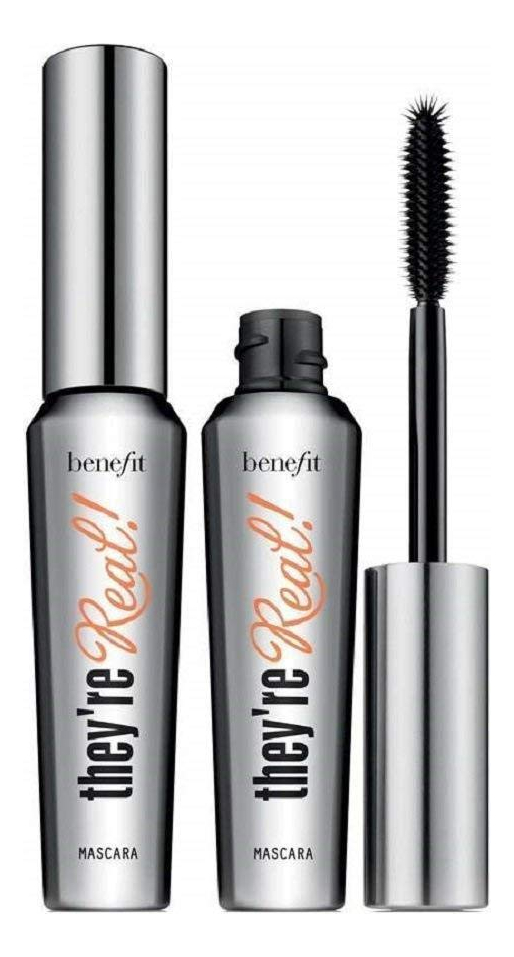 Conjunto duplo de rímel Benefit Cosmetics They're Real Beyond preto, 0,3 onças (pacote com 2) — Um rímel alongador que enrola, dá volume, levanta e separa os cílios — Com sua fórmula brilhante, preta azeviche e de longa duração, você exibirá cílios luxuosos e sedosos que não mancham, grudam ou ressecam — O pincel especialmente projetado apresenta cerdas escalonadas que se fixam perto da raiz, aumentando inacreditavelmente o comprimento e o volume. Revela cílios que você nunca soube que tinha! – A ponta com cúpula personalizada usa cerdas de precisão para levantar, definir e enrolar até mesmo seus cílios mais pequenos – Pacote econômico! 2 x 1,3 onças